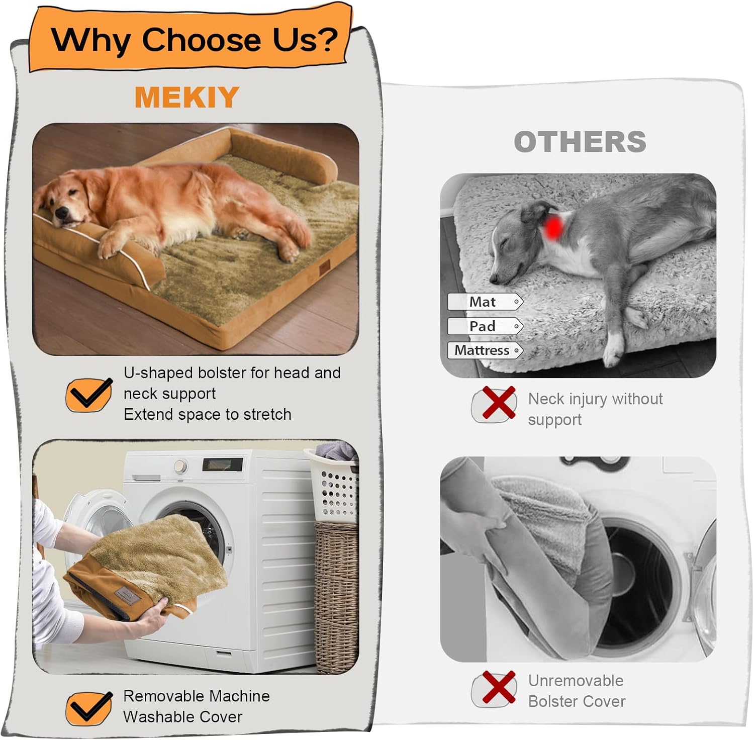 Large Dog Bed Orthopedic Washable, Orthopedic Dog Beds for Large Dogs with Washable Cover, Removable Bolster and Non-Slip Bottom Orange Pet Beds, XL XLarge Extra Large Dogs
