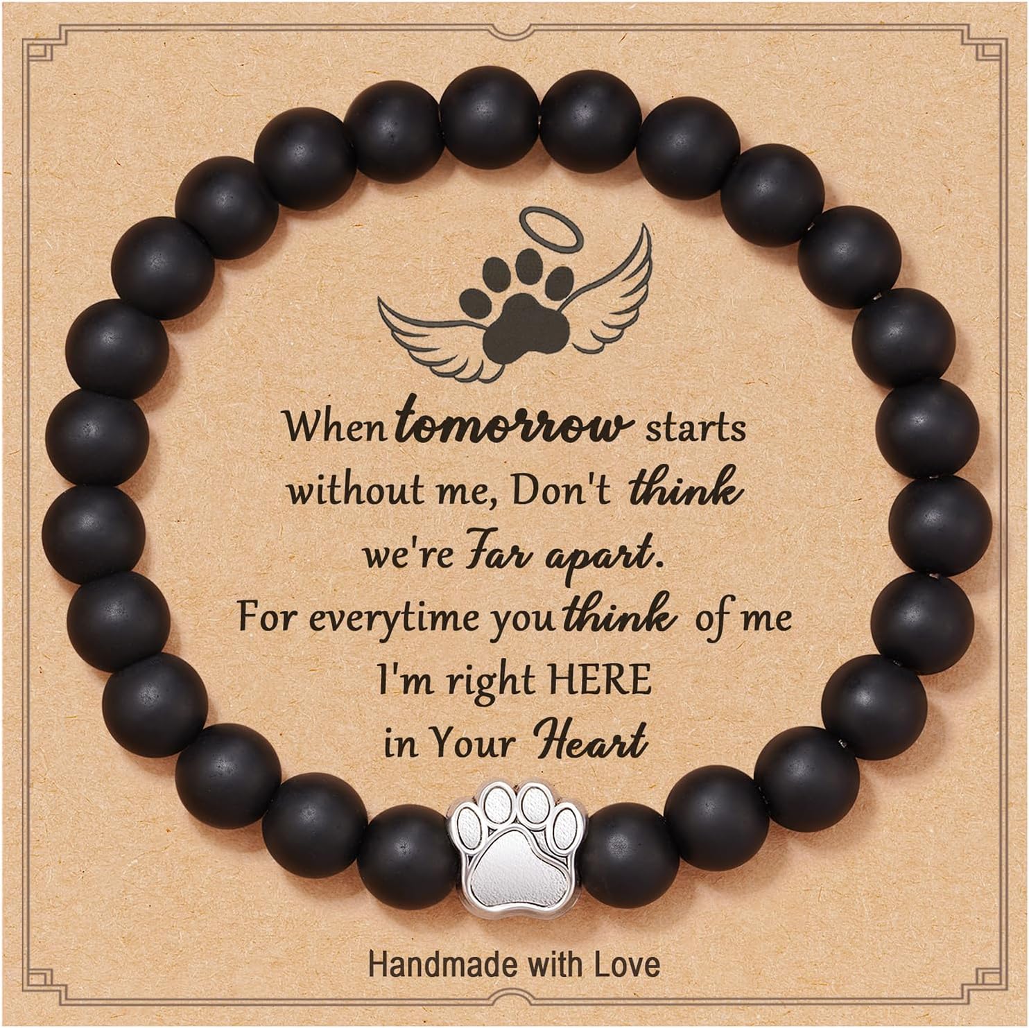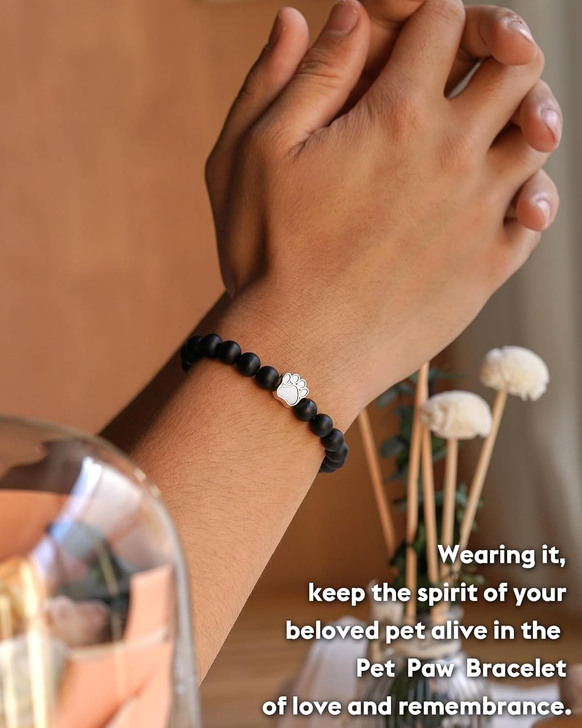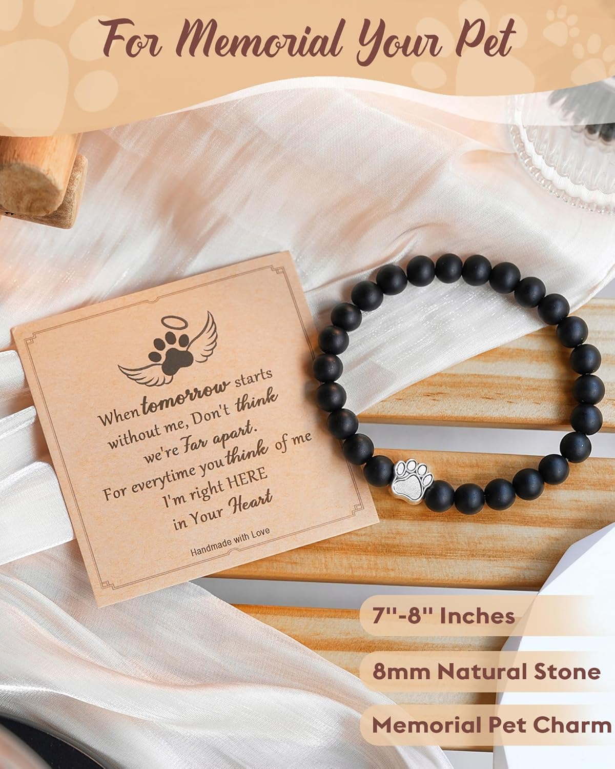 - ใ Material & Sizeใ - Our memorial bracelets feature charming stainless steel pet paw and are crafted with high-quality 8mm natural stone. Length is about 6.8" to 8", fits most people's wrists, and is comfortable and convenient