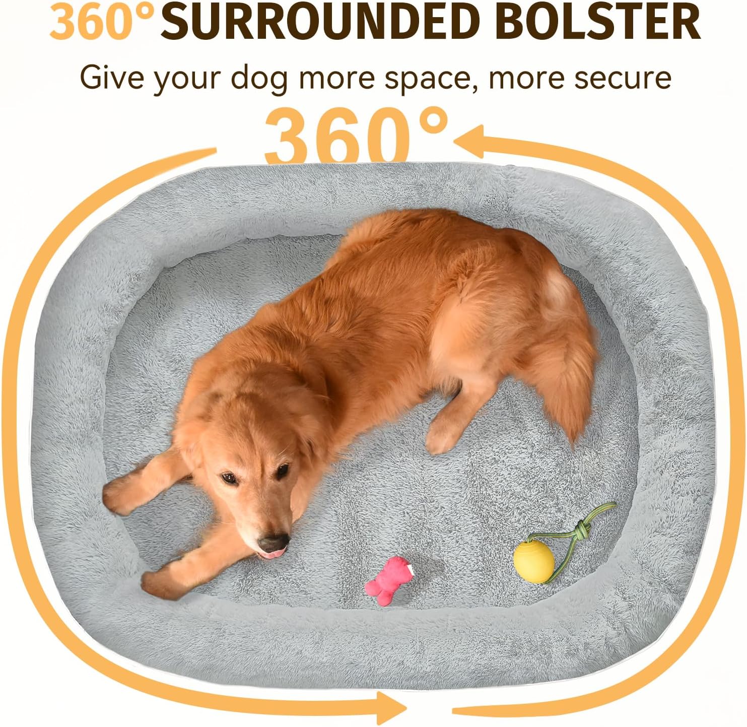 - 360° Surrounded Support: This 360° full circle design creates a secure sleeping environment, making dog bed large ideal for dogs who prefer a more enclosed space; The bolsters also served as a headrest that provides additional support for the neck and back; Whether your dog likes to curl up or stretch out, this orthopedic dog bed accommodates all sleeping positions