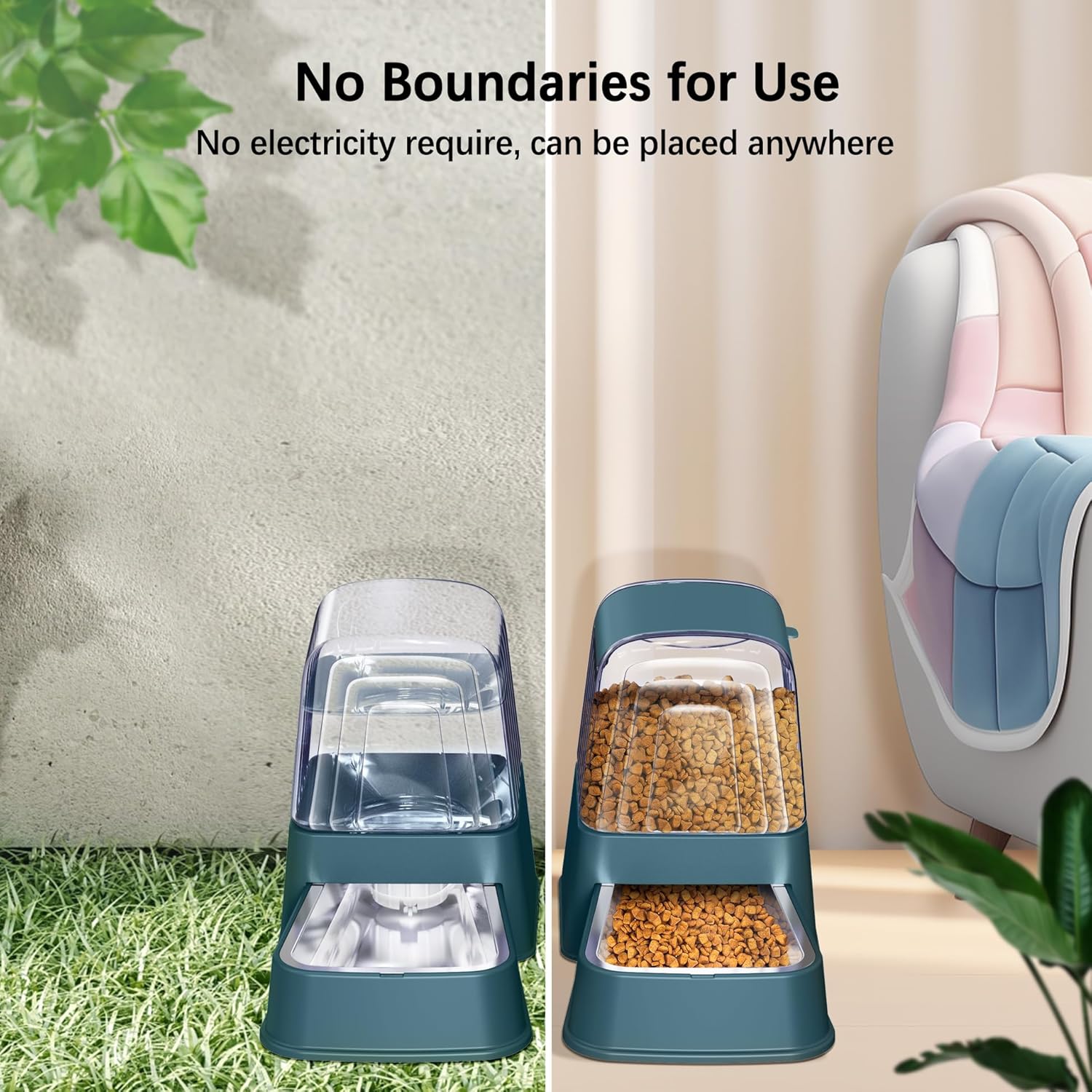 Automatic Dog and Cat Food Feeder and Water Dispenser Set with Stainless Steel Bowls,Gravity Pet Food and Water Feeders,100% BPA-Free,Large Capacity for Cats Dogs Pets