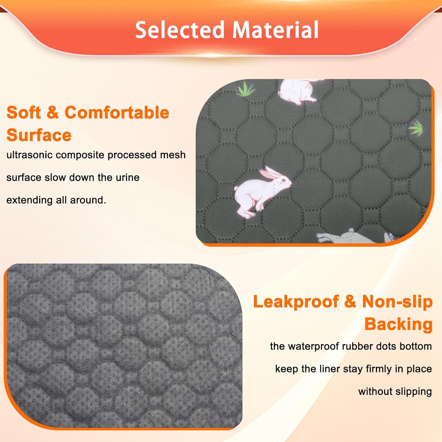 - Improve Comfort: Made of absorbent quilted fabric materials, featuring a cozy surface and absorbing the urine quickly. The backing of the guinea pig bedding is leak proof and covered with rubber dots helps to stay firmly in place without slipping, promoting a comfortable living environment for your guinea pigs.