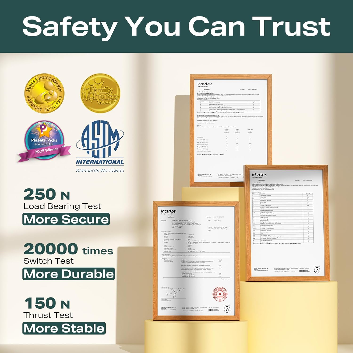 - Award-Winning Safety Trusted by Families: Cumbor's baby gate is proudly a Mom’s Choice Award recipient, chosen by real parents and child safety experts. Backed by years of hands-on design and testing, it's trusted in thousands of homes to protect babies and pets with confidence—because your child’s safety deserves nothing less.