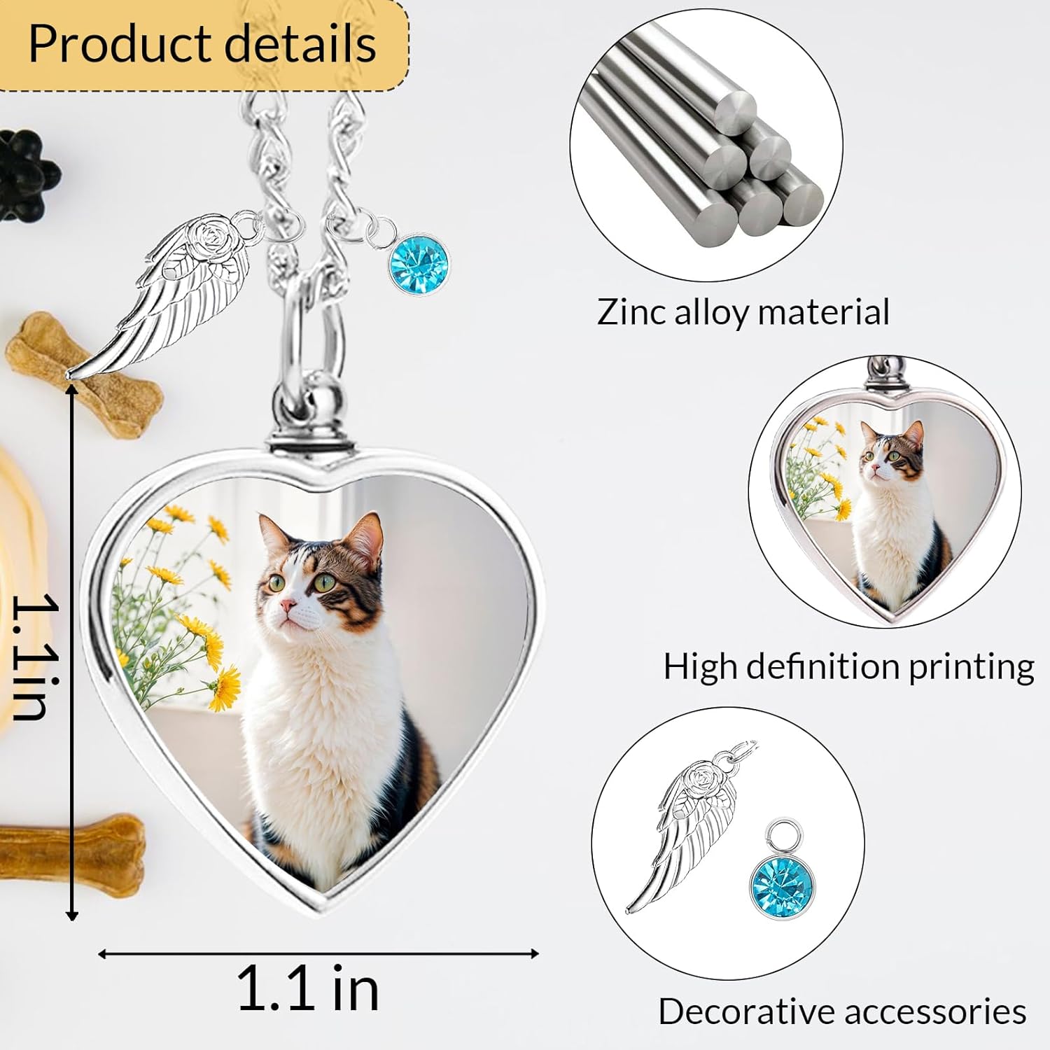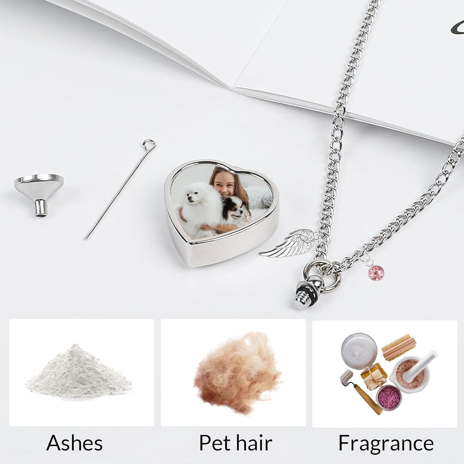 Personalized Pet Ashes Necklace for Dog Cat Custom Engraving Photo Text Urn Keepsake Pendant Necklace Customize Cremation Jewelry with Angel Wing Birthstone for Dog Lover (06)