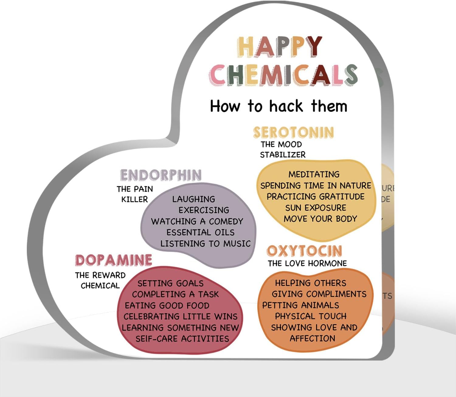 Mental Health Gifts, Therapist Office Desk Plaque, Book Center Classroom Playroom Calming Corner Decorations, Psychology Gifts for Counselor, Happy Chemicals Sign Plaque