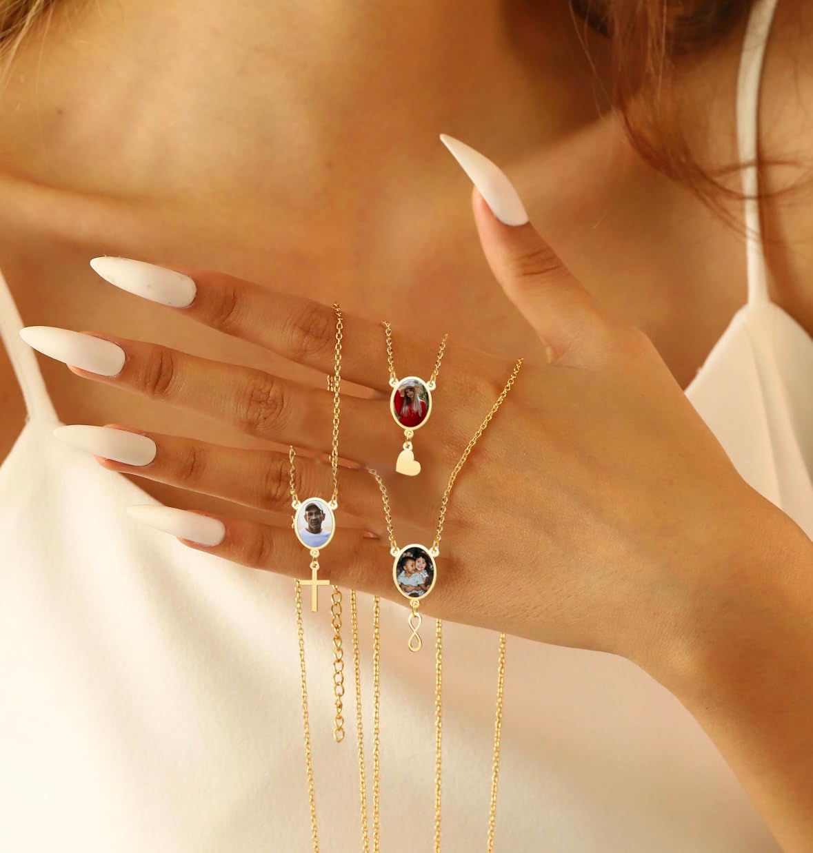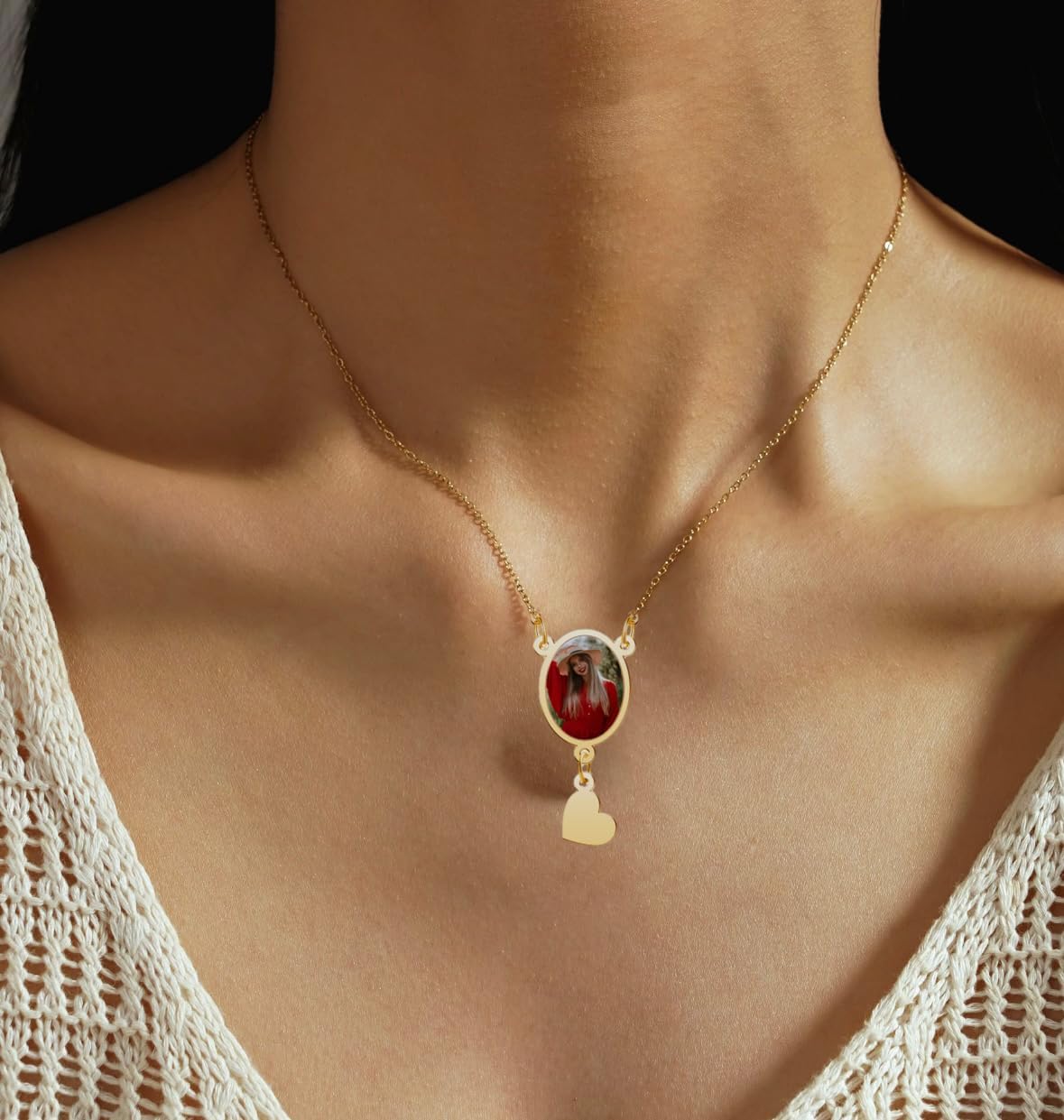 CharmSStory Personalized Photo Necklaces Custom Engraved Name Necklace Memory Keepsake Picture Necklace Pendant Customized Gifts for Women Men