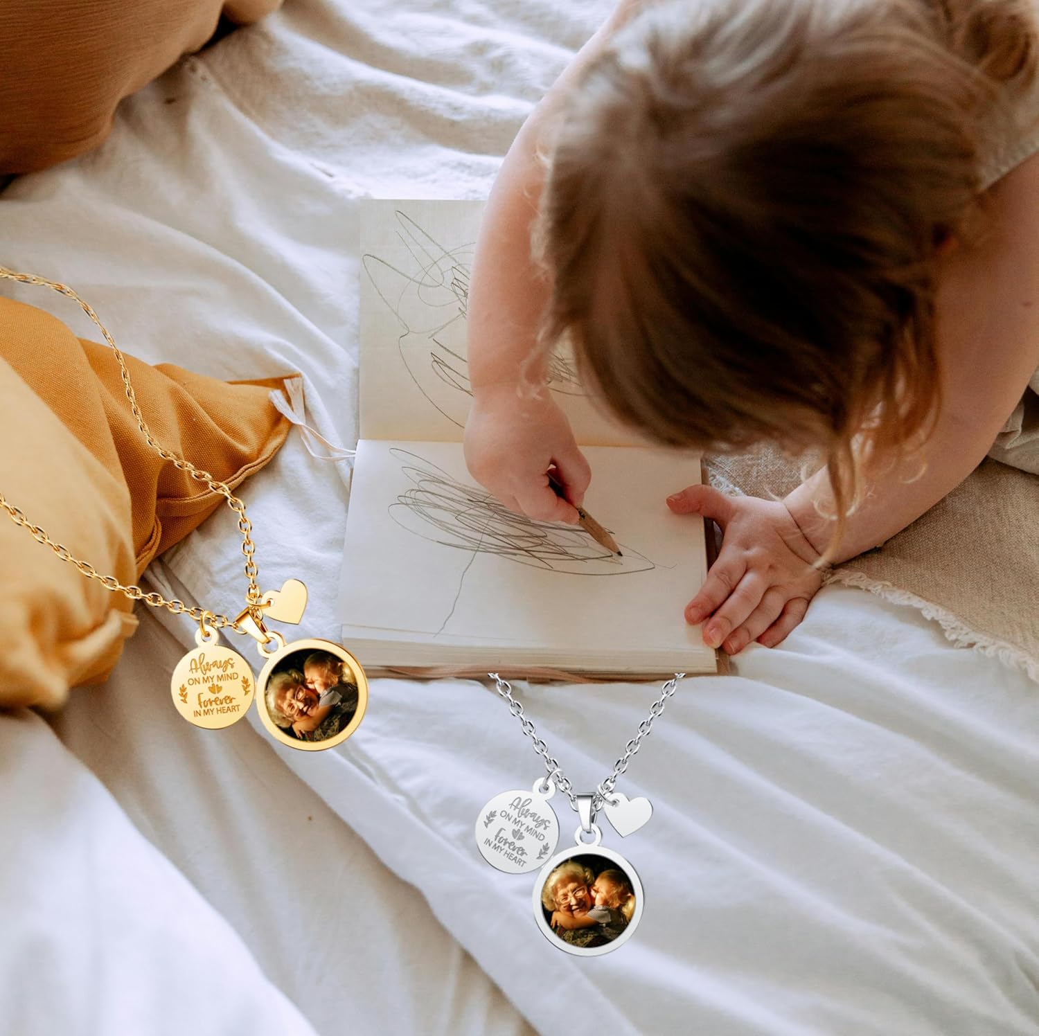 CharmSStory Personalized Photo Necklaces Custom Engraved Name Necklace Memory Keepsake Picture Necklace Pendant Customized Gifts for Women Men