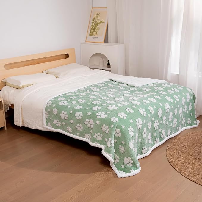 Waterproof Blanket for Dog Cat or Adult, Cute 3D Textured Paw Dog Blanket for Bed Couch Sofa, Soft Liquid Pee Proof Pet Furniture Protector, 50"x60", Green
