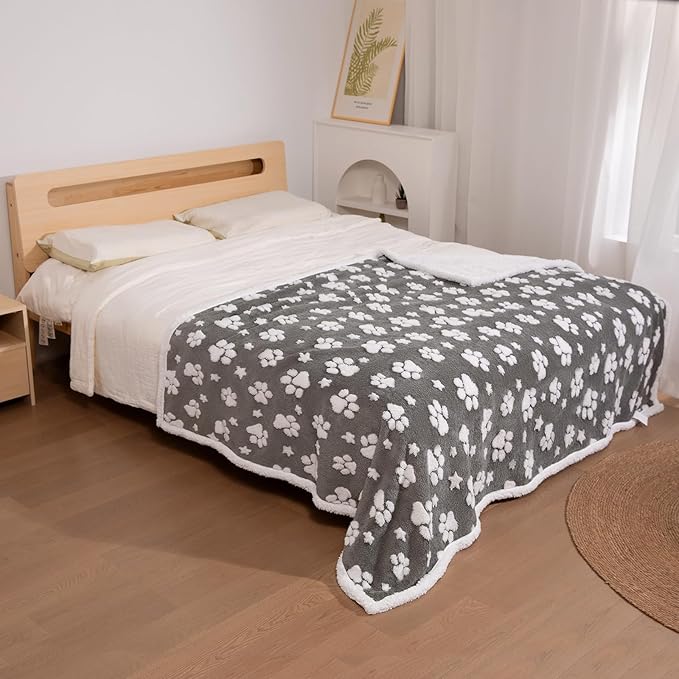 Waterproof Blanket for Dog Cat or Adult, Cute 3D Textured Paw Dog Blanket for Bed Couch Sofa, Soft Liquid Pee Proof Pet Furniture Protector, 60"x80", Grey