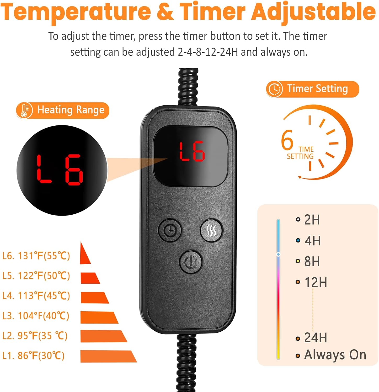 - Safe Heating with Adjustable Temperature & Timer: Equipped with a low-wattage, energy-efficient heating pad, the adjustable temperature and timer allow you to tailor the heat level to your cat's preferences, guaranteeing a perfectly cosy experience every time.