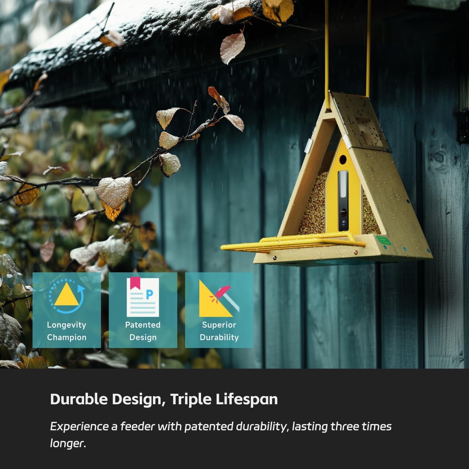 - 【GreenTough Material】 Birddy bird feeder is crafted from GreenTough material, known for its durability and eco-friendliness. This high-quality material ensures long-term use, being waterproof, resistant to cracking, deformation. Additionally, GreenTough is 100% recyclable, embodying our commitment to sustainability.