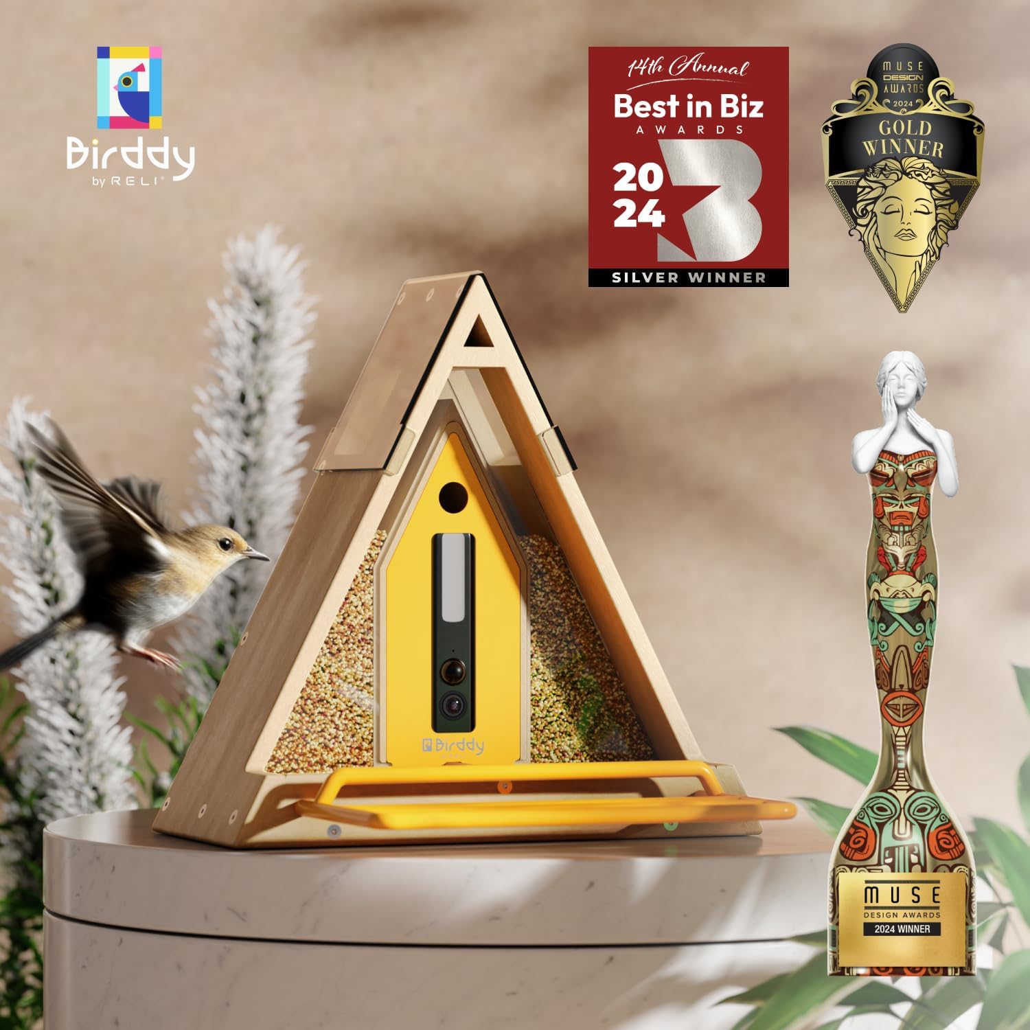 RELI Birddy Original Smart Bird Feeder with Camera Solar Powered, Durable Material GreenTough Feeder with Birds Watching Camera, AI Identify, Live View, Instant Notify, Ideal Gift for Bird Lovers