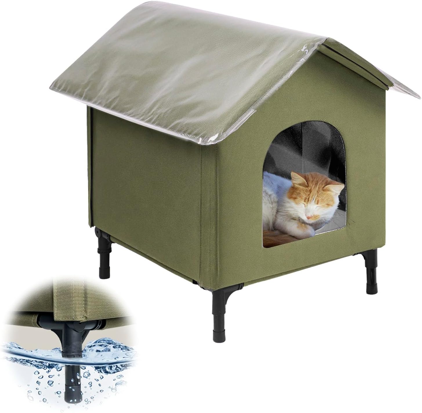 - ๐๐จ๐ข๐ฌ๐ญ๐ฎ๐ซ๐ ๐๐๐ฌ๐ข๐ฌ๐ญ๐๐ง๐ญ ๐๐๐ญ ๐๐จ๐ฎ๐ฌ๐:The outdoor cat house weatherproof features a PVC curtain that blocks rain and snow. Elevated 5.1 inches off the ground, it prevents snow from blocking the door and stops rainwater from seeping in from below