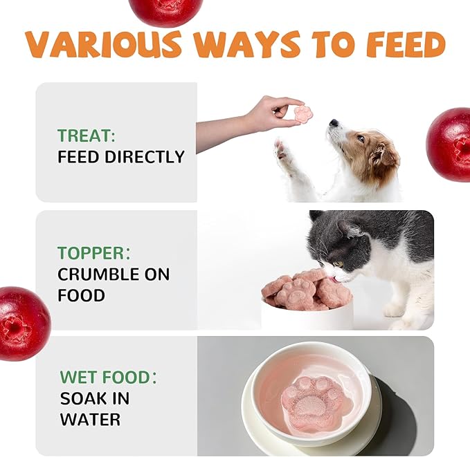 Freeze Dried Cat & Dog Treats, Natural Quail Egg Yolk, Rich in Antioxidants Cranberry Added, High-Protein Pet Snacks for Coat & Urinary Health, 3.5 oz