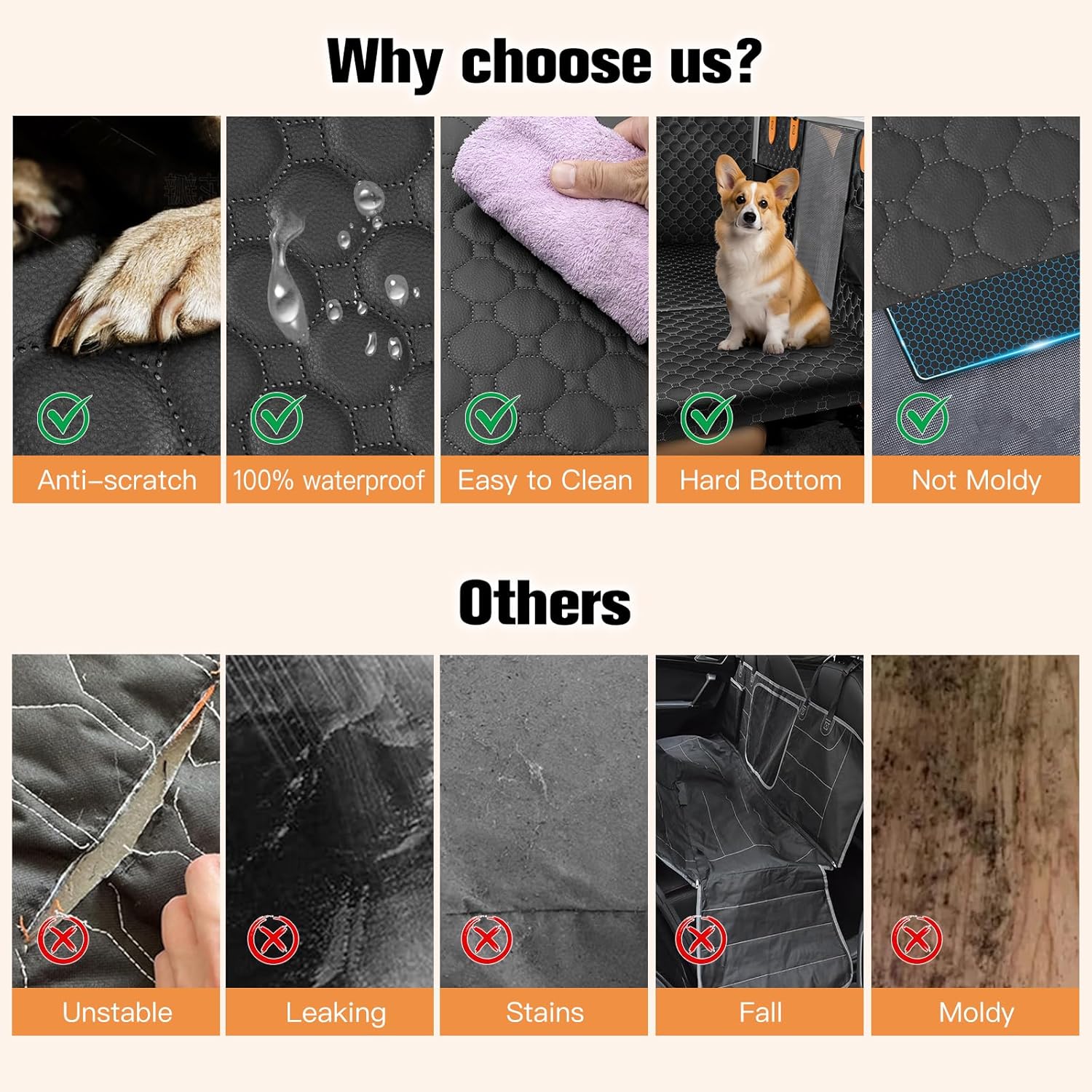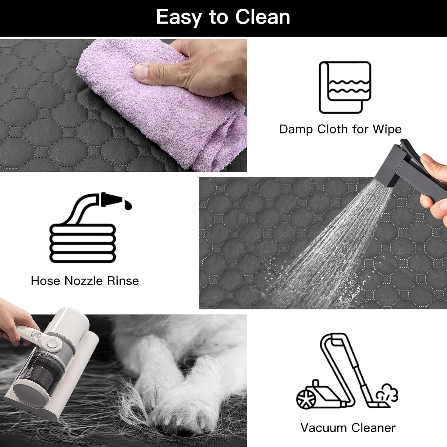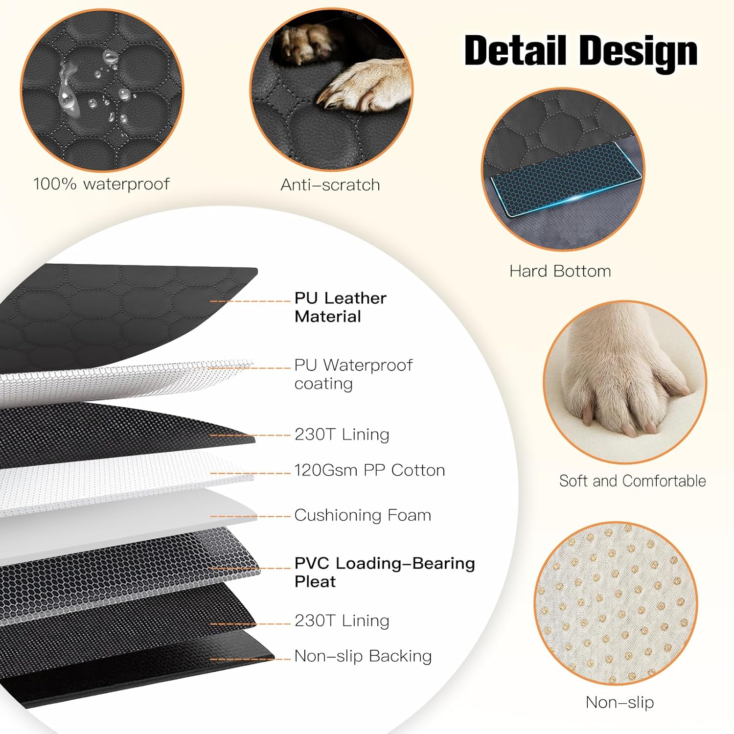 - 【100% Waterproof & Scratch-Resistant】Fuzzyearn back seat pet cover for dogs with its unique 7-layer design, including 250gsm faux leather, PP cotton filler, load-bearing hardboard,waterproof microfiber, PVC waterproof coating,35D sponge and EVA non-slip backing, this premium dog car seat cover for back seat provides complete protection against spills, mud, claws, and fur. It’s easy to clean: simply wipe with a damp cloth or machine wash.