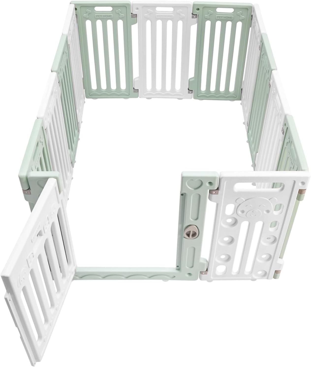 - 🐕Solid Structure: The polygonal grooves and snap-in design make each panel tightly connected and the bottom non-slip suction cups ensure firm absorption to the floor, forming a stable enclosure area without accidentally collapsing.🐕Quick Access: The door is designed for easy access to the pet and the owner's daily management, while an external safety door lock prevents the pet from running out of the enclosure by itself.