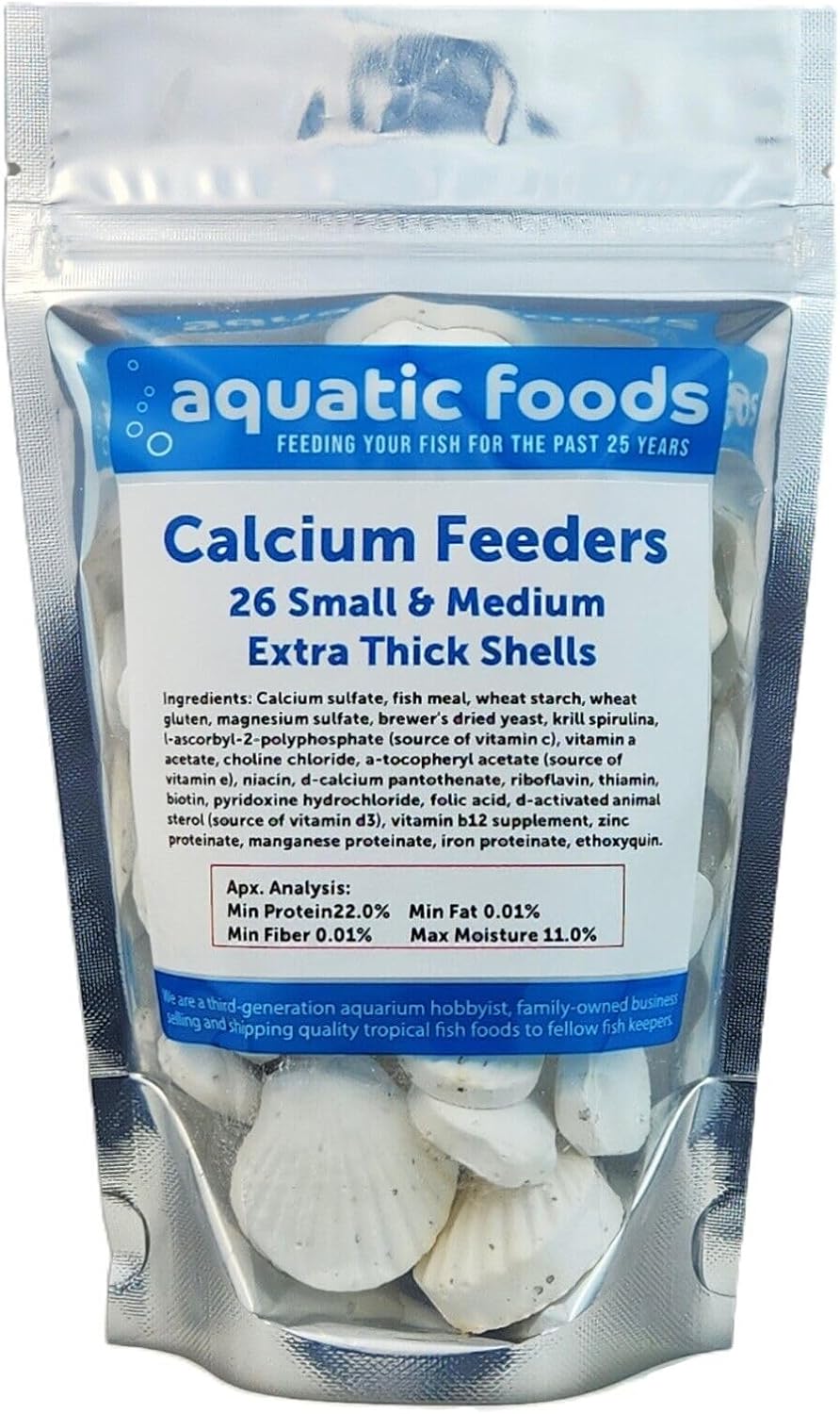 Aquatic Foods Inc. Calcium Feeder Small & Medium Shells. Extra Thick Shells for Shrimp, Snails, Crabs, Crayfish, Hermit Crabs and All Tropical Fish. 4oz …26 Count Bag