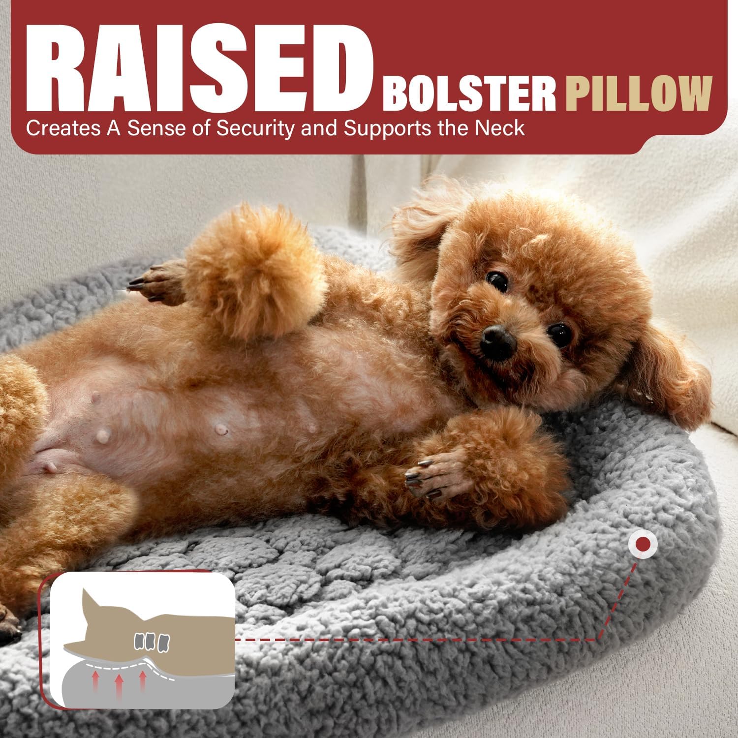 Mora Pets Self Warming Cat Bed Self Heating Pet Pad with Bolster and Foam Washable Removable Cover Non Slip Thermal Sherpa Fabric Pet Mat Grey 23 Inch