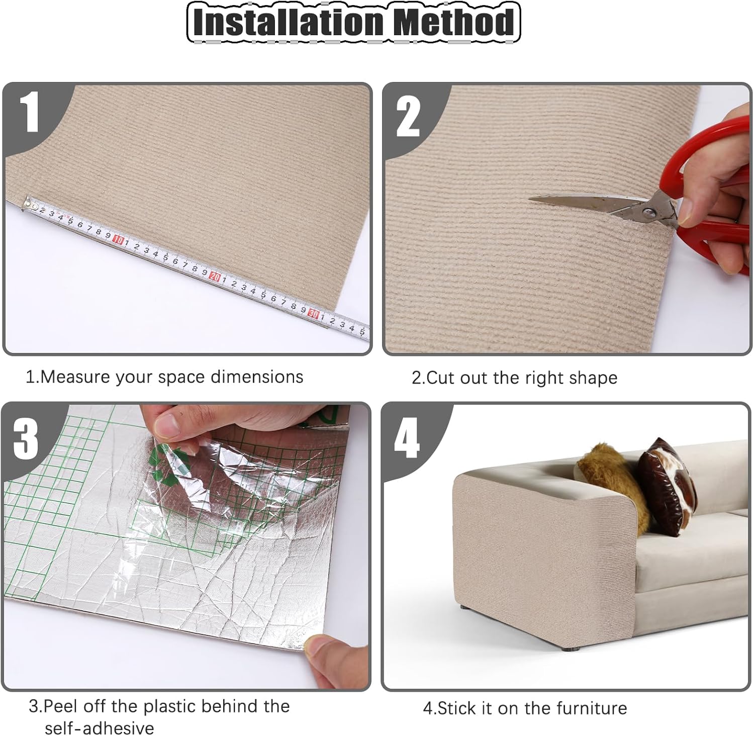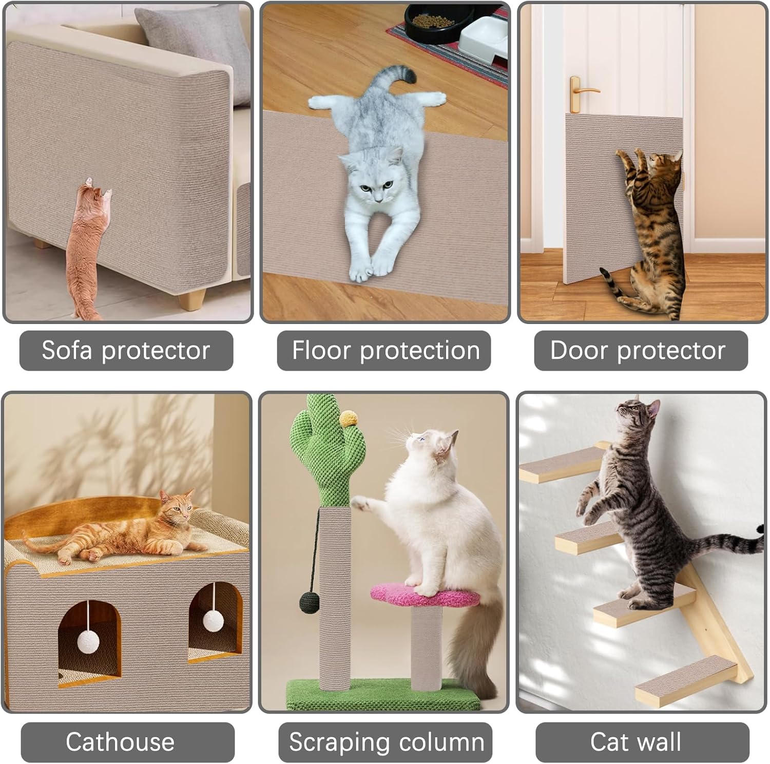 - 【DIY CUTTABLE DESIGN】Cat Scratch Mat Is Designed to Be Easily Cut to Replace Cat Scratching Board and Cat Scratching Post, And It Is Also Convenient to Stick It on Furniture and Other Items for Cats to Climb and Play. You Can Freely Cut It into Any Shape According to the Actual Size Required, And Use It for Cat Racks, Wooden or Wooden Cat Trees, Cat Towers, Sofas or Other Furniture and Other Surface Carpet Substitutes.