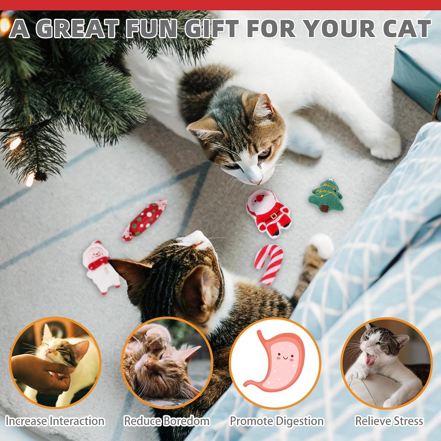 - 5 PACK CATNIP TOYS IN ONE PACKAGE: You will receive a beautifully packaged gift bag filled with Christmas atmosphere (7 inches in length, 5.2 inches in width), as well as five cute Christmas toys, including a Santa Claus, a snowman, a Christmas tree, a candy, and a cane. It has rich colors and is the perfect gift for cute cats.
