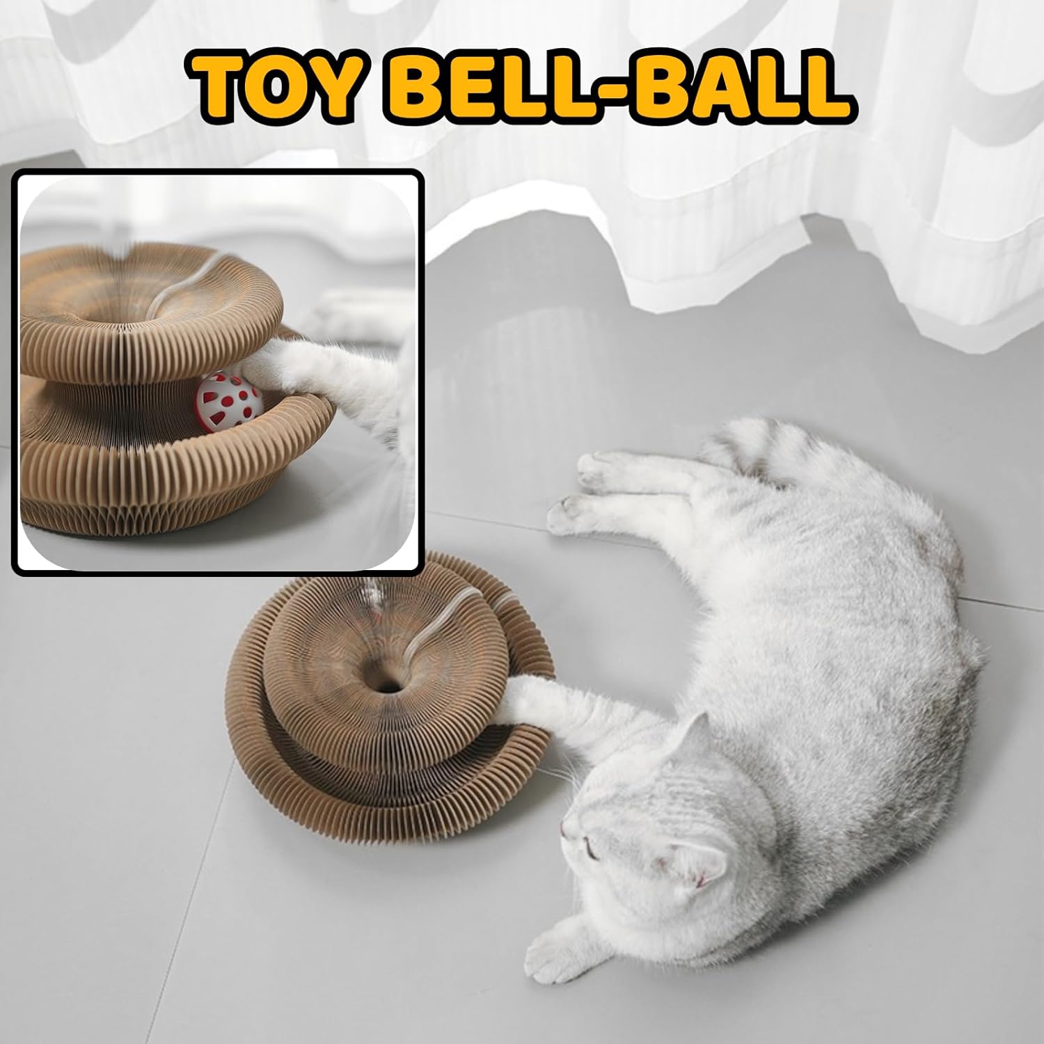 Cute Magic Organ Cat Scratcher Foldable Funny Cats Cardboard Toy Sturdy with Bell-Ball for Indoor Cats Kitty Accordion Toys for Scratching (1)