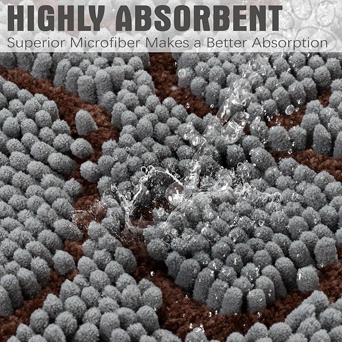 EXPAWLORER Dog Door Mat for Muddy Paws - Highly Absorbent Microfiber Rug, Soft Chenille Runner Indoor Outdoor Floor, Non-Slip Large Pet Paw Cleaning Washable Mud Mat for Bathroom, Grey