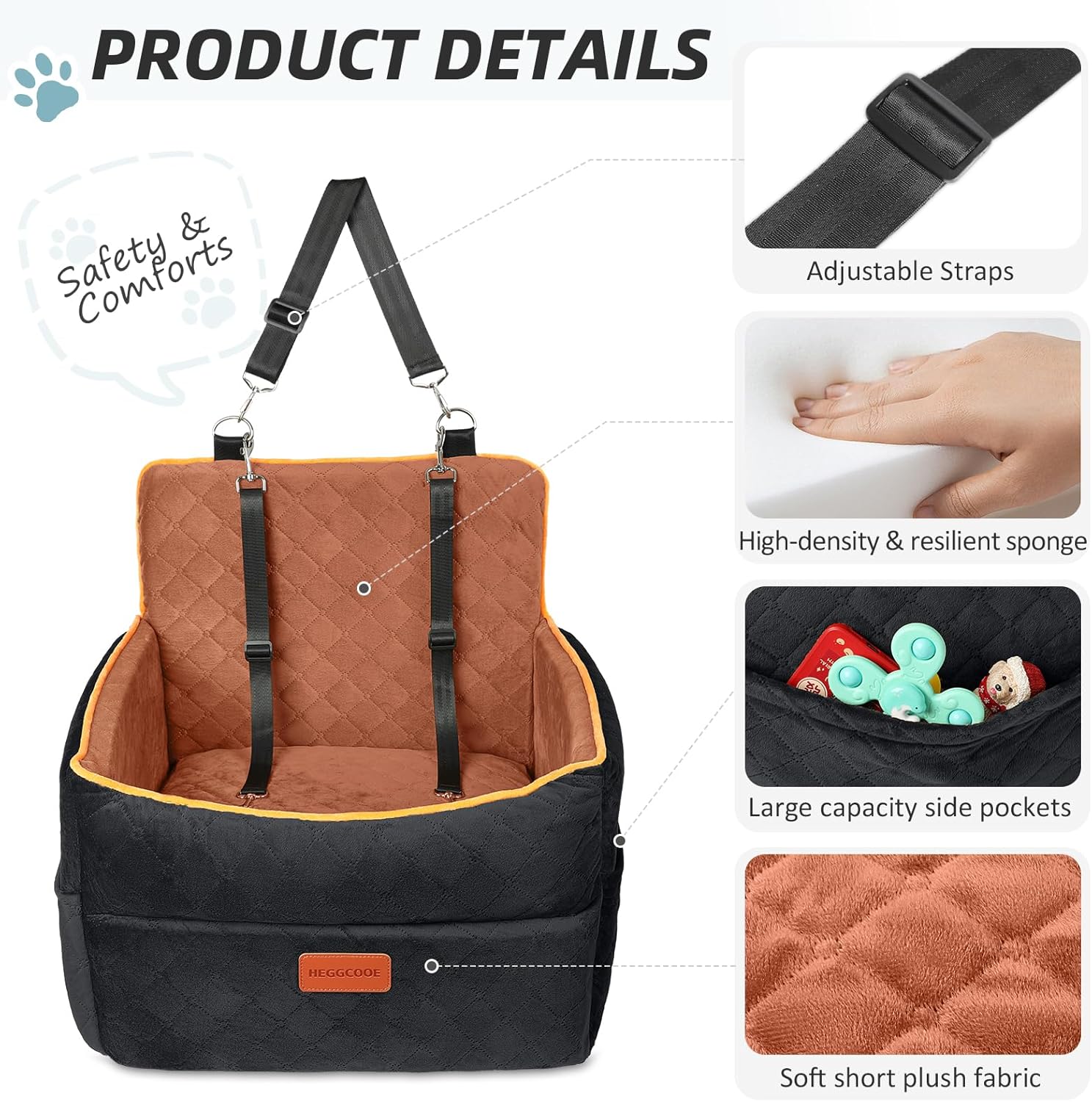 - Comfort and Safety : The surface of dog booster car seat is made of short plush fabric, super soft and comfortable, and the bottom is filled with high-density egg-shaped foam to provide superior comfort and support, effectively reducing the impact of road bumps,together with the non-slip bottom and headrest straps, the dog car bed will be more stable to ensure your dog's safety