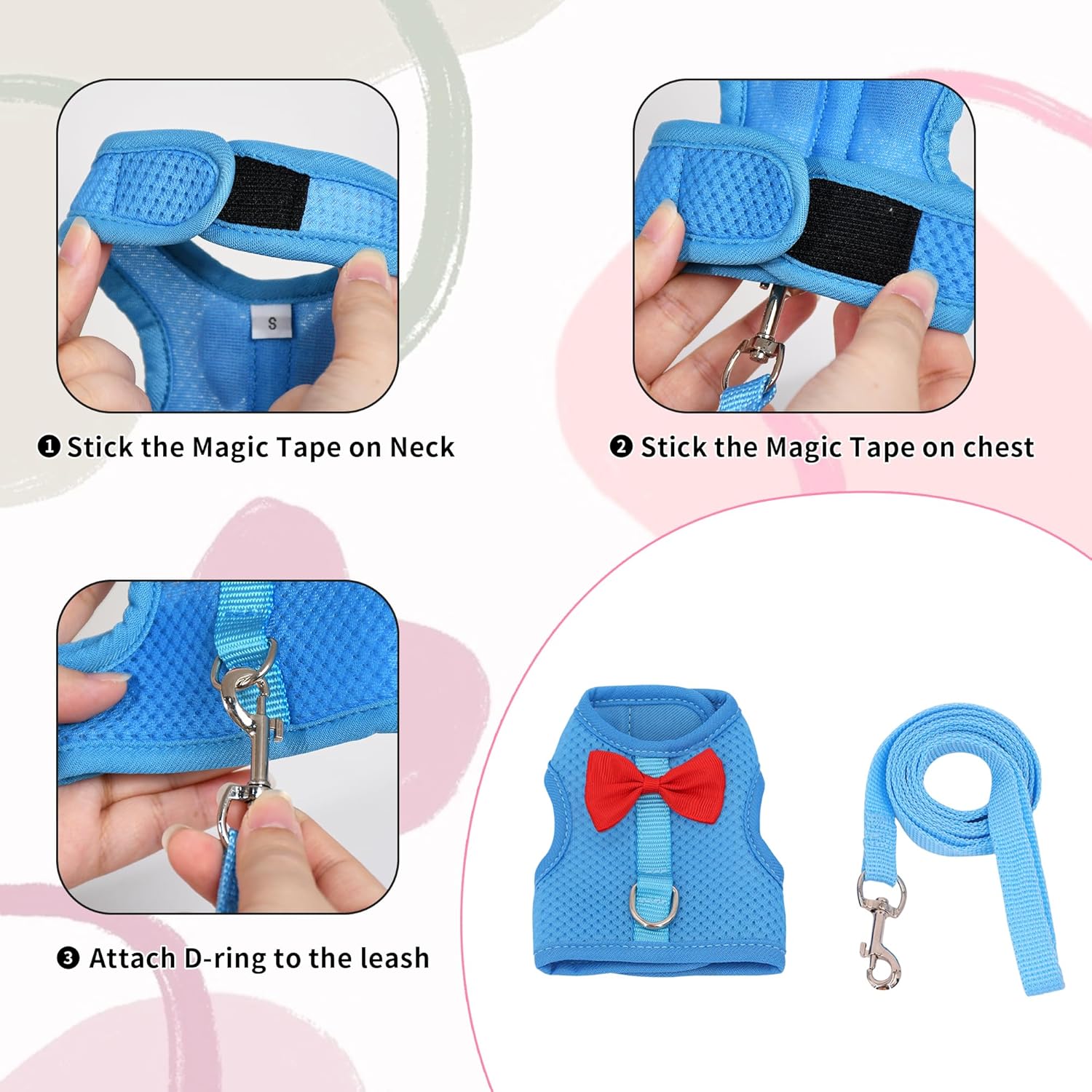 AIITLE Bunny Harness and Leash Set with Cute Bow, Soft Breathable Mesh Vest Harness for Rabbits Kitten Ferret Small Pig Puppy Walking Supplies Blue M