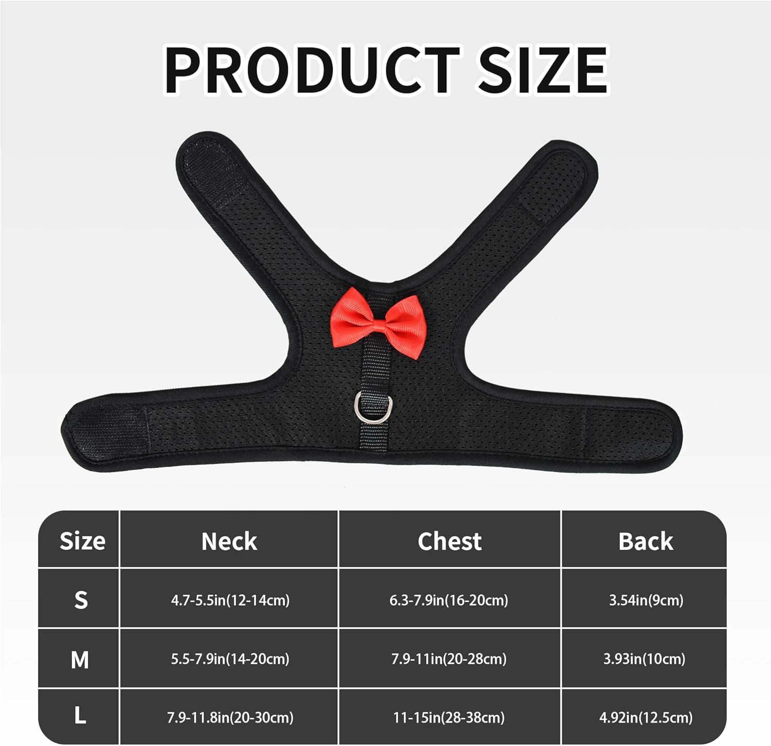 AIITLE Rabbit Harness and Leash Set with Cute Bow, Soft Breathable Mesh Vest Harness for Rabbits Kitten Ferret Puppy Small Pets Walking Supplies Black L