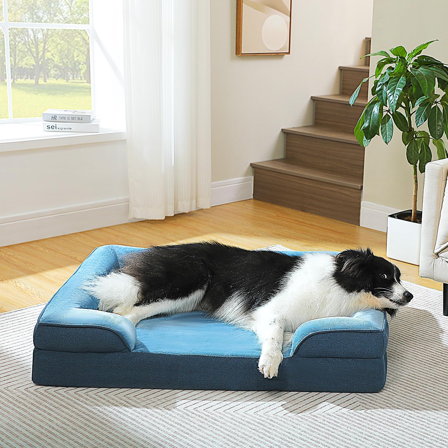 PAWZ Road Orthopedic Dog Bed Medium Size Dog Bed Washable with Supportive Foam,2-Layer Waterproof Cover and Non-Slip Bottom for Small, Medium Dogs-Blue Large