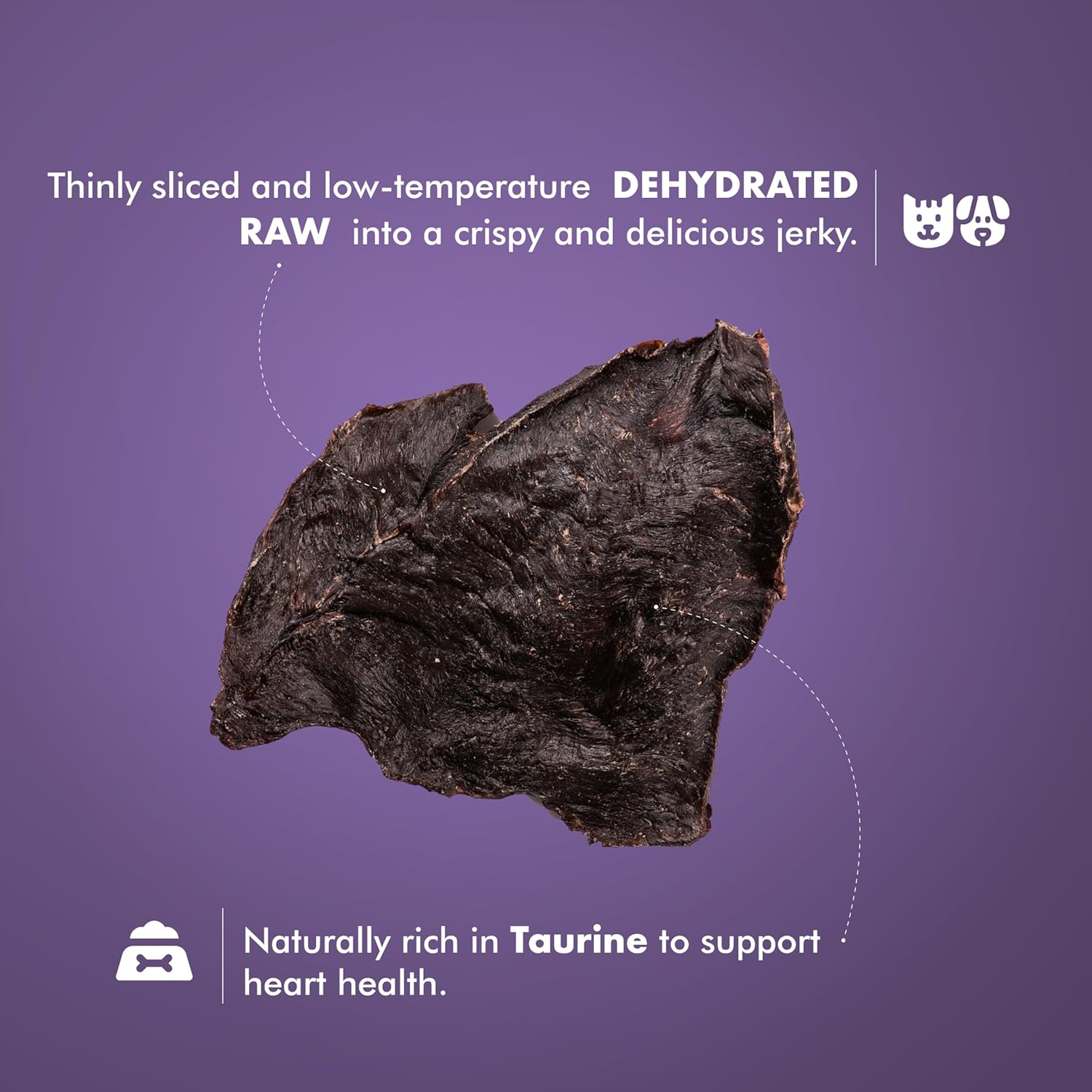 - Single Ingredient Dog Treat - Made with grass-fed beef heart, our dehydrated beef jerky for dogs offers a simple, delicious snack your pets will enjoy