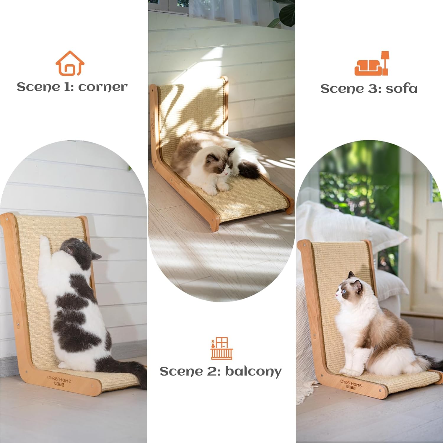 CHEERHOME PETS Sisal Cat Scratcher for Indoor Cats Scratching Pad Vertical Cat Scratcher L Shape Cat Scratching Board Cats Scratch Post Solid Wooden Cat Furniture(Large)