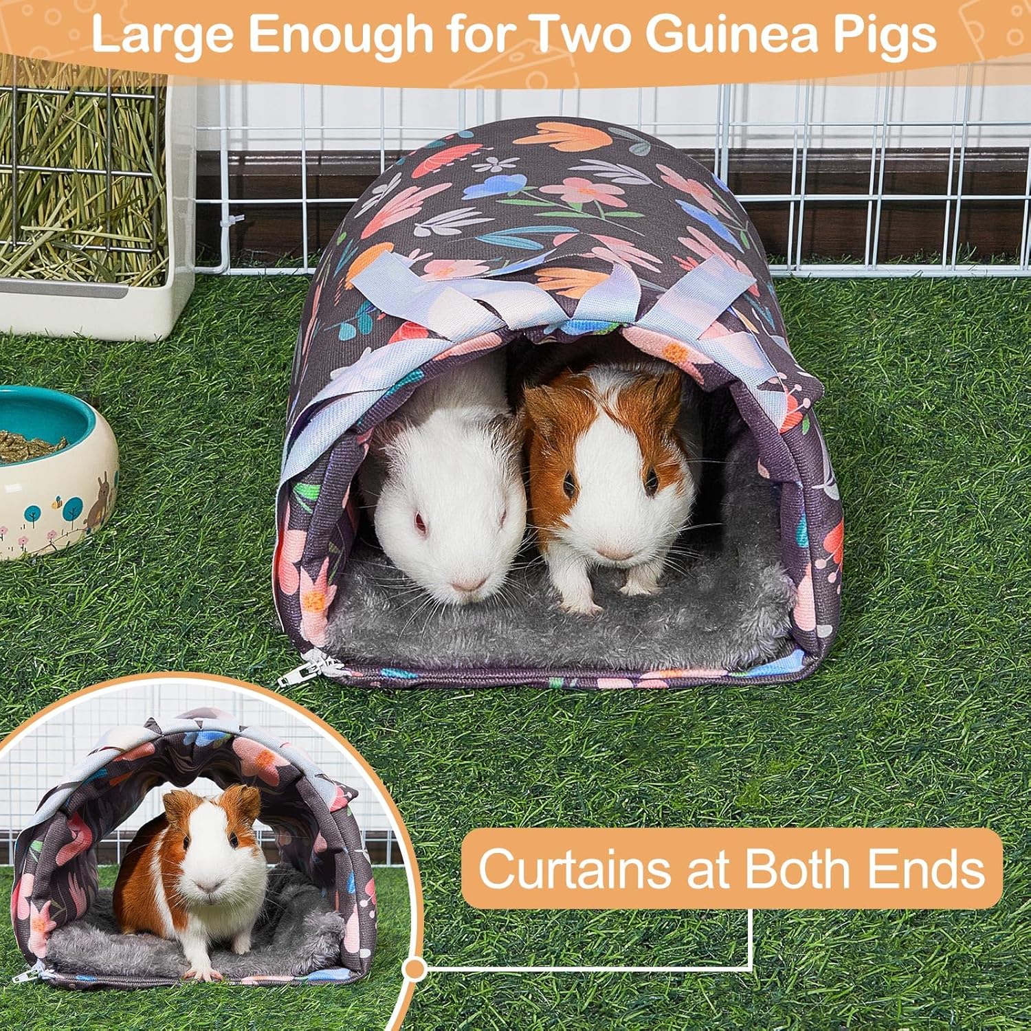 - Great stuff: The curtains at both ends of the opening provide hiding space for your pets, helping them relax and feel comfortable inside the tunnel; This guinea pig hideout can be placed in the guinea pig cages for guinea pigs to play and rest