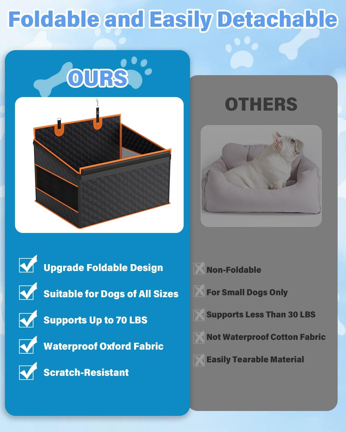Dog Car Seat for Large Dogs, Back Seat Extender for Dogs, Foldable Pet Car Seat with Waterproof Oxford Fabric and Non-Slip Bottom, All-Around Protection and Strong Support