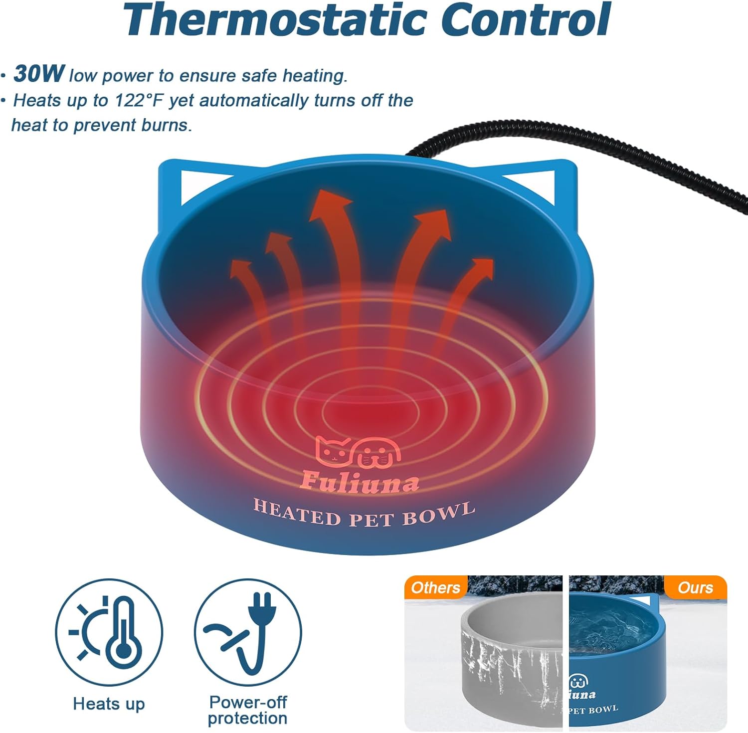 - ๐ค๐๐ฎ๐น๐ถ๐๐ ๐ฆ๐ฒ๐ฟ๐๐ถ๐ฐ๐ฒ - This heated outdoor water bowl has been tested & certified by UL Labs, please feel free to use it! We recommend placing outside heated dog bowl in a sheltered area to avoid wind damage. Do not immerse the pet's thermal bowl in water, and unplug and turn off the energizing when there is no water in the bowl. If the pet bowl does not appear to be heating, stop using it and feel free to contact us, we will provide you with a satisfactory solution.
