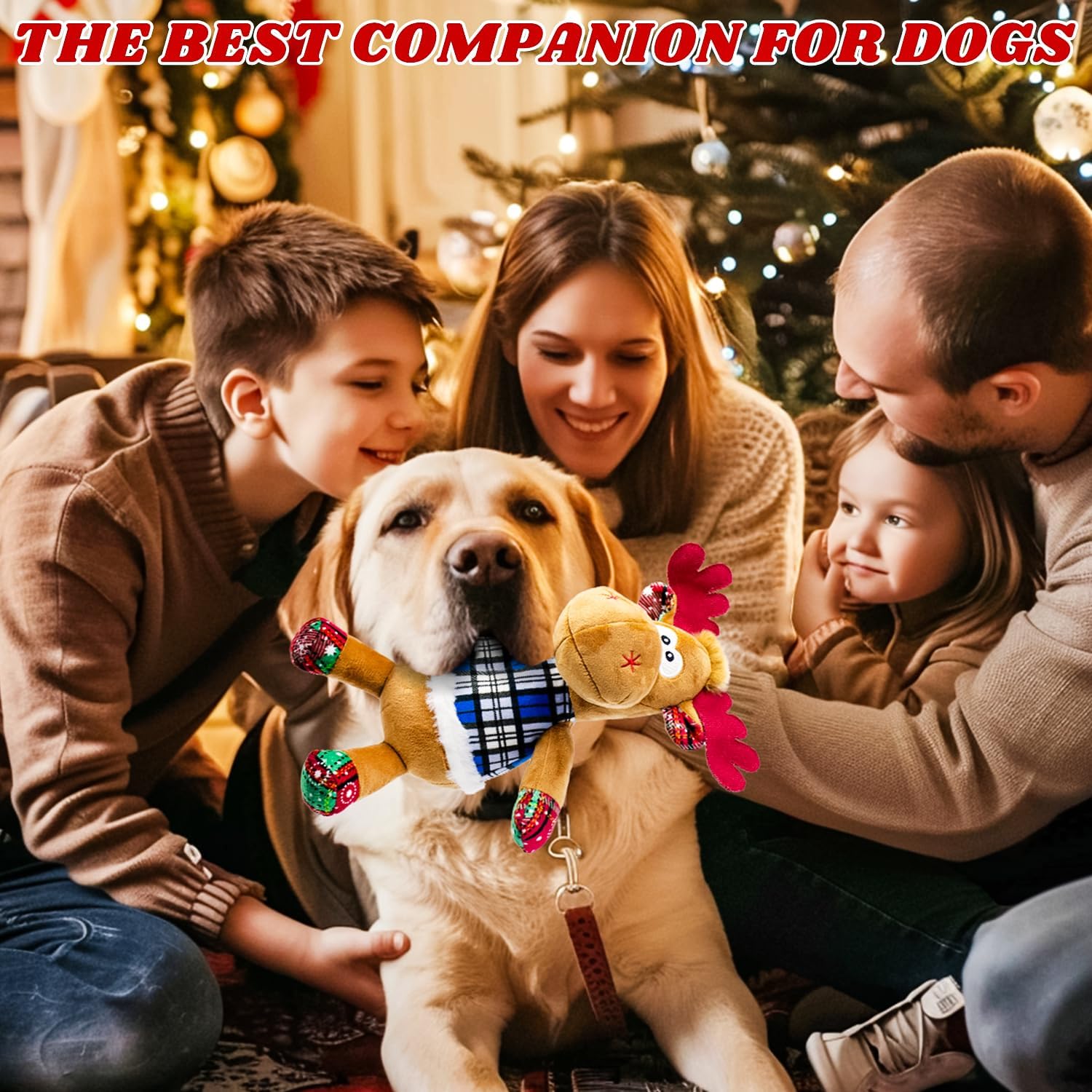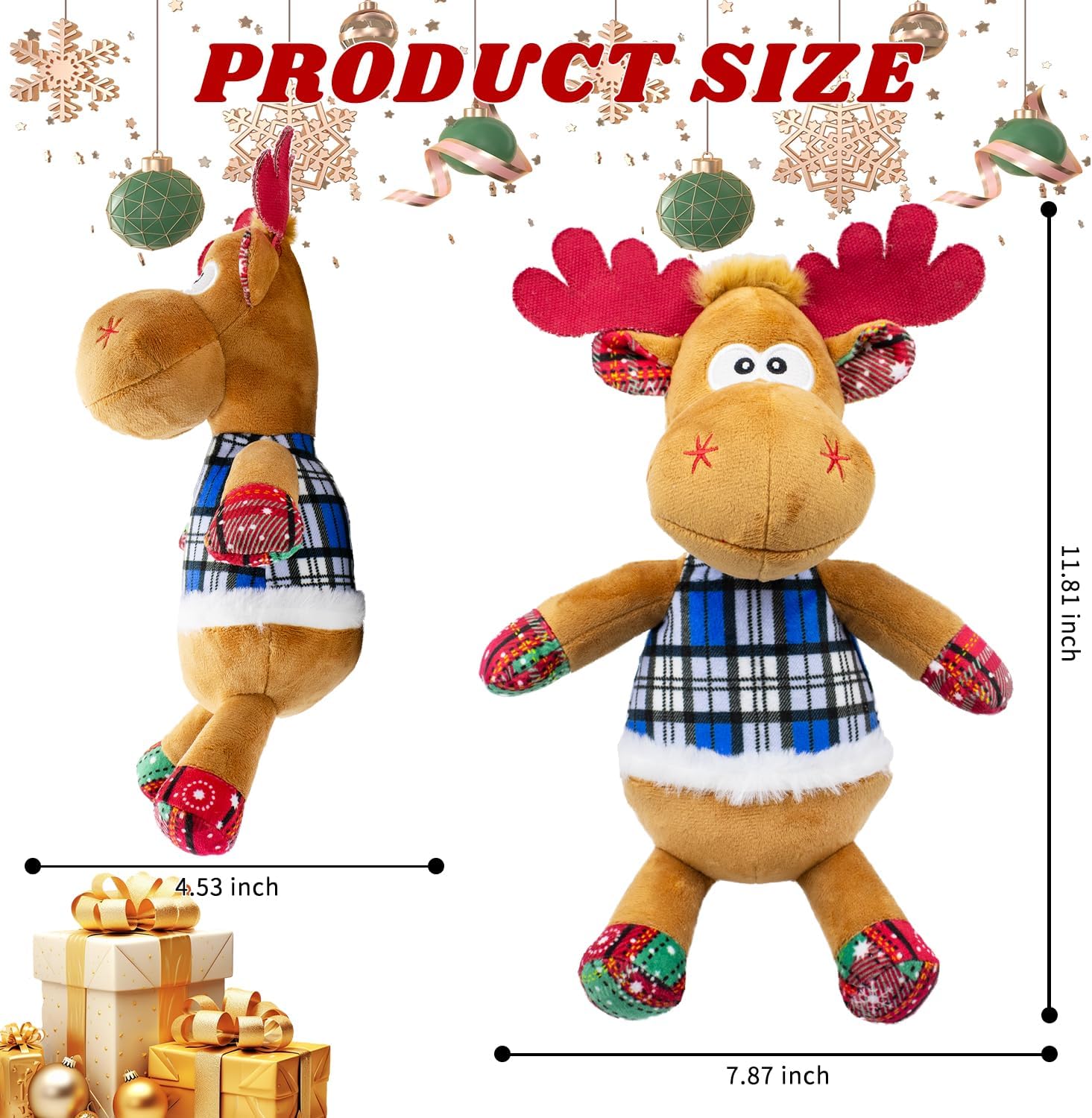 Dog Toys Squeaky Interactive Puppy Teething Chew Toy with Crinkle Sound Paper Tail Stuffed PP Cotton,Keep Them Busy, Large Medium Small Breeds Indoor Play, Christmas Deer