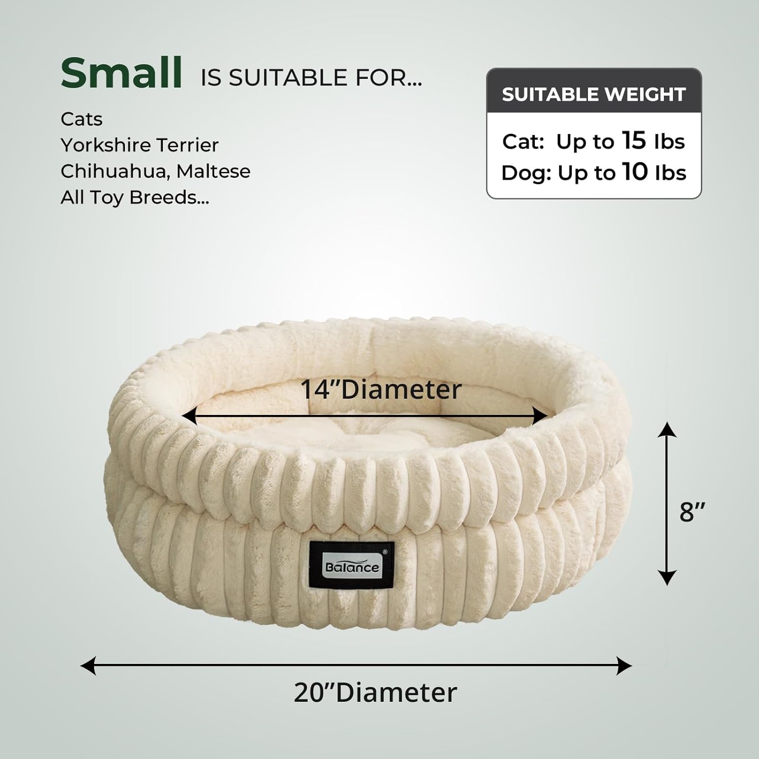 BALANCE Cat Bed Kitten Bed, Washable Round Cat Beds for Indoor Cats,Super Soft Plush Faux Fur Pet Bed for Puppy and Kitten with Anti-Slip Bottom