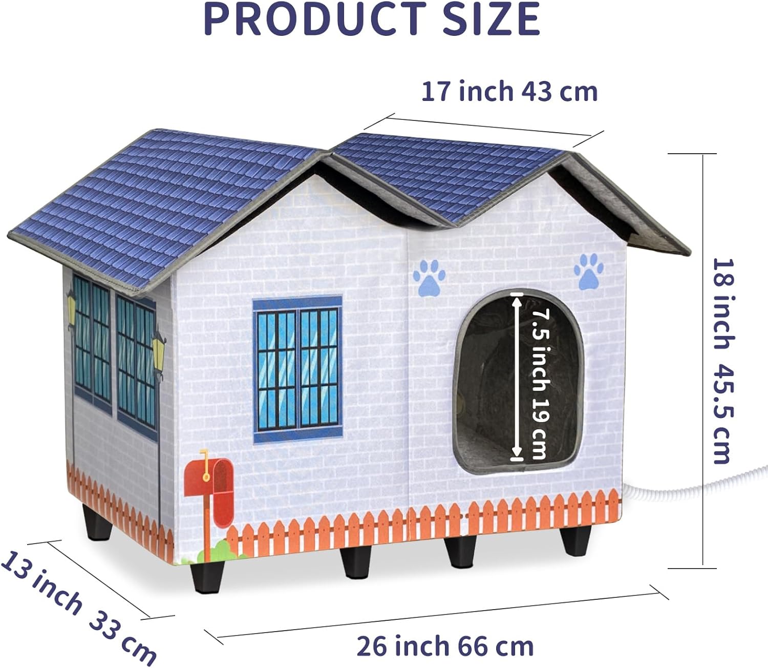 - 【EASY TO ASSEMBLE】---Our heated cat house is very easy to assemble in minutes. It is perfect for the porch, garage or even barn- sheltering your kitty from outside temperatures. Our unique elevated cat house would make a perfect gift for any cat lover!