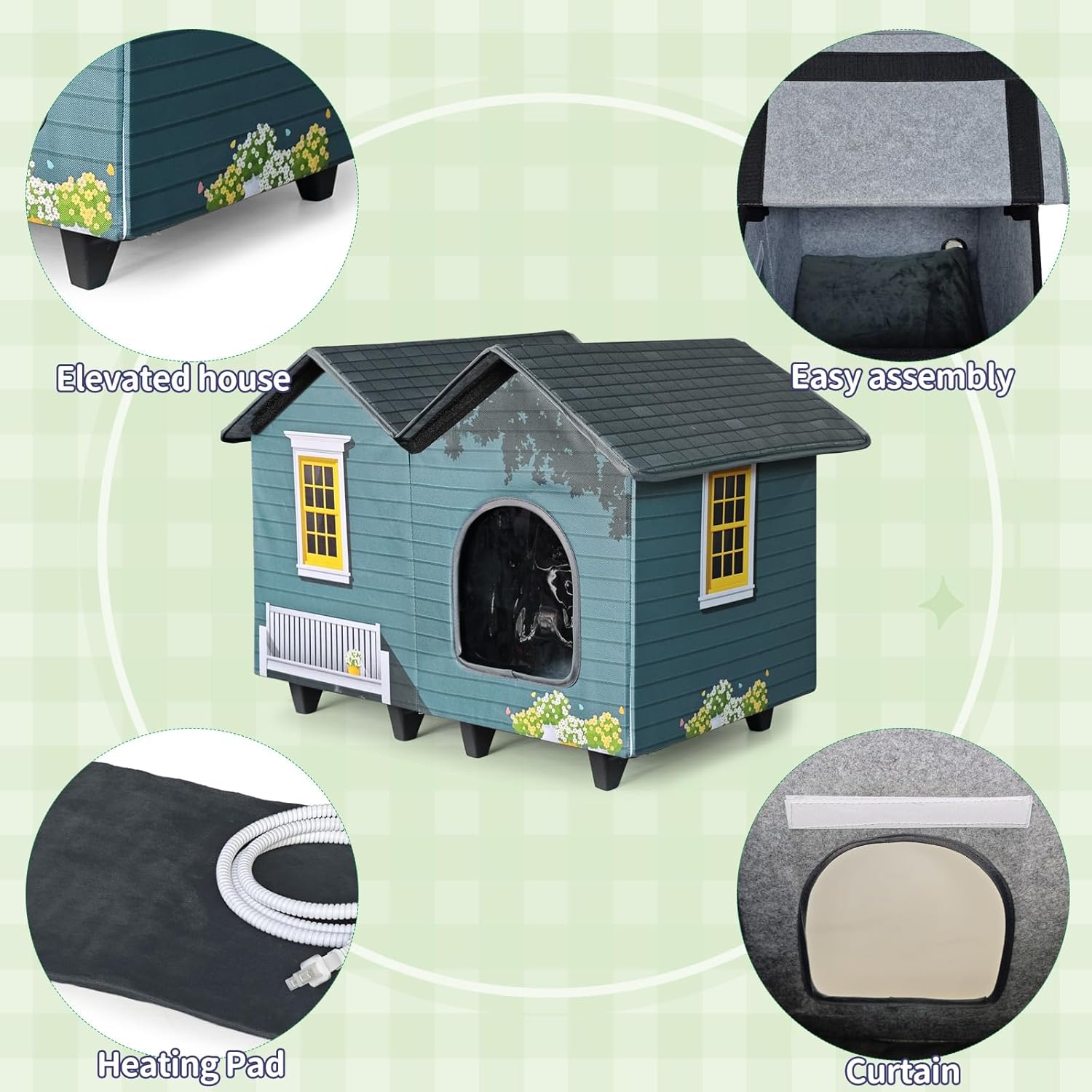 - 【EASY TO ASSEMBLE】---Our heated cat house is very easy to assemble in minutes, It is perfect for the porch, garage or even barn- sheltering your kitty from outside temperatures. Our unique elevated cat house would make a perfect gift for any cat lover!