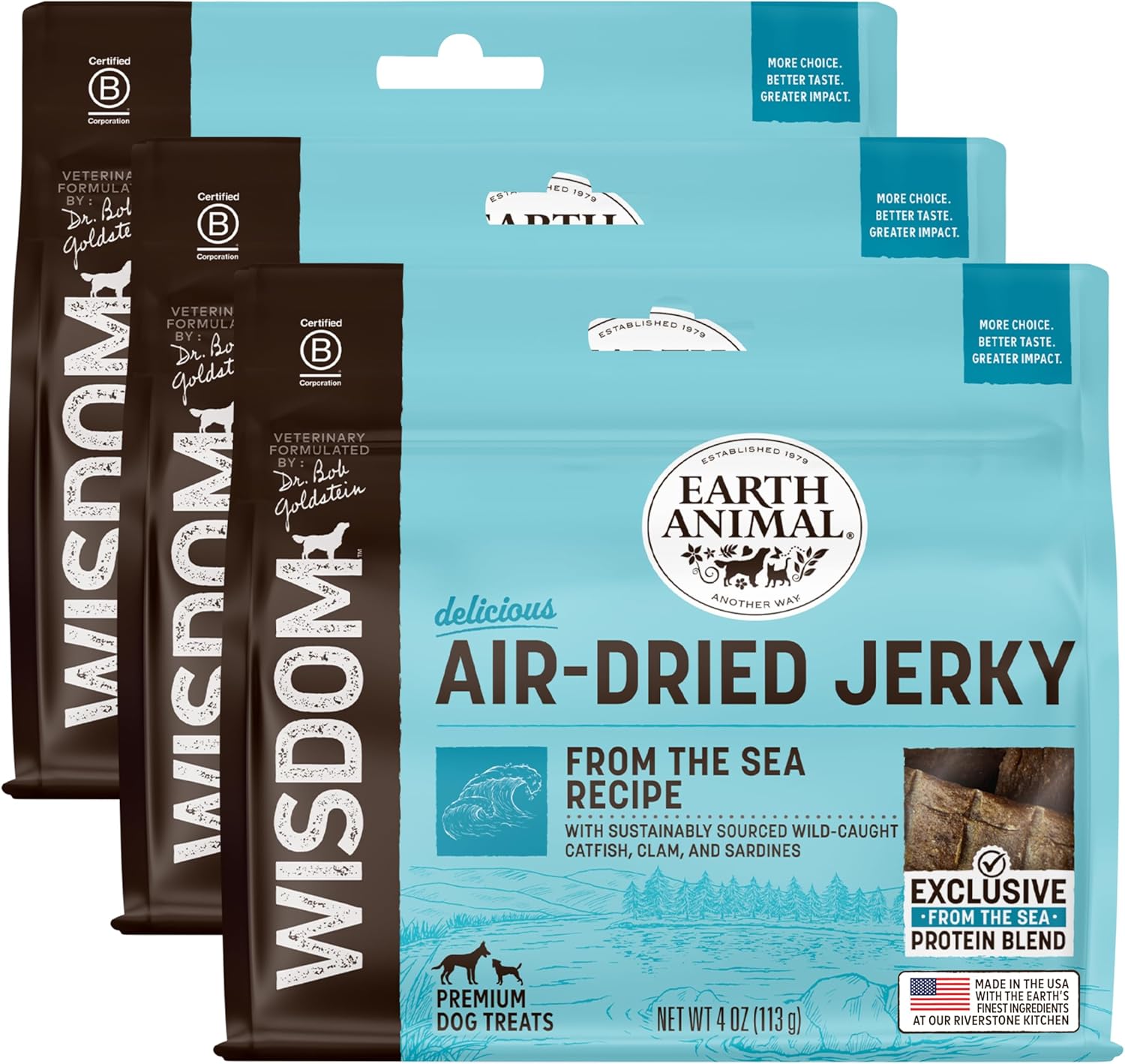 Earth Animal Wisdom Air-Dried Jerky from The Sea Recipe | Dog Treats | Dog Snacks | Premium Natural Fish Jerky Strips | 4 oz |Made in The USA (Pack of 3)