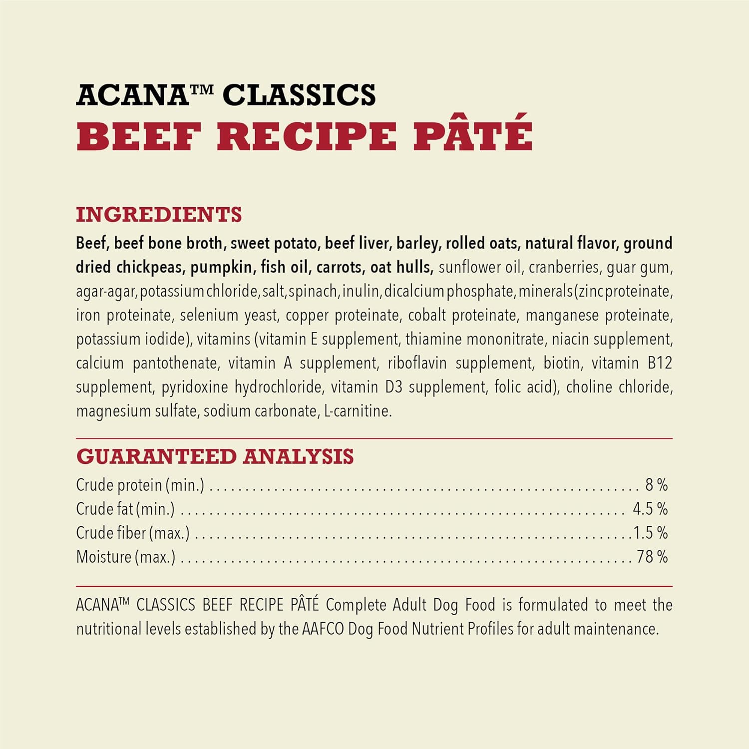 ACANA Classics Pate Wet Dog Food Beef Recipe 12.5oz Cans (12 Count)