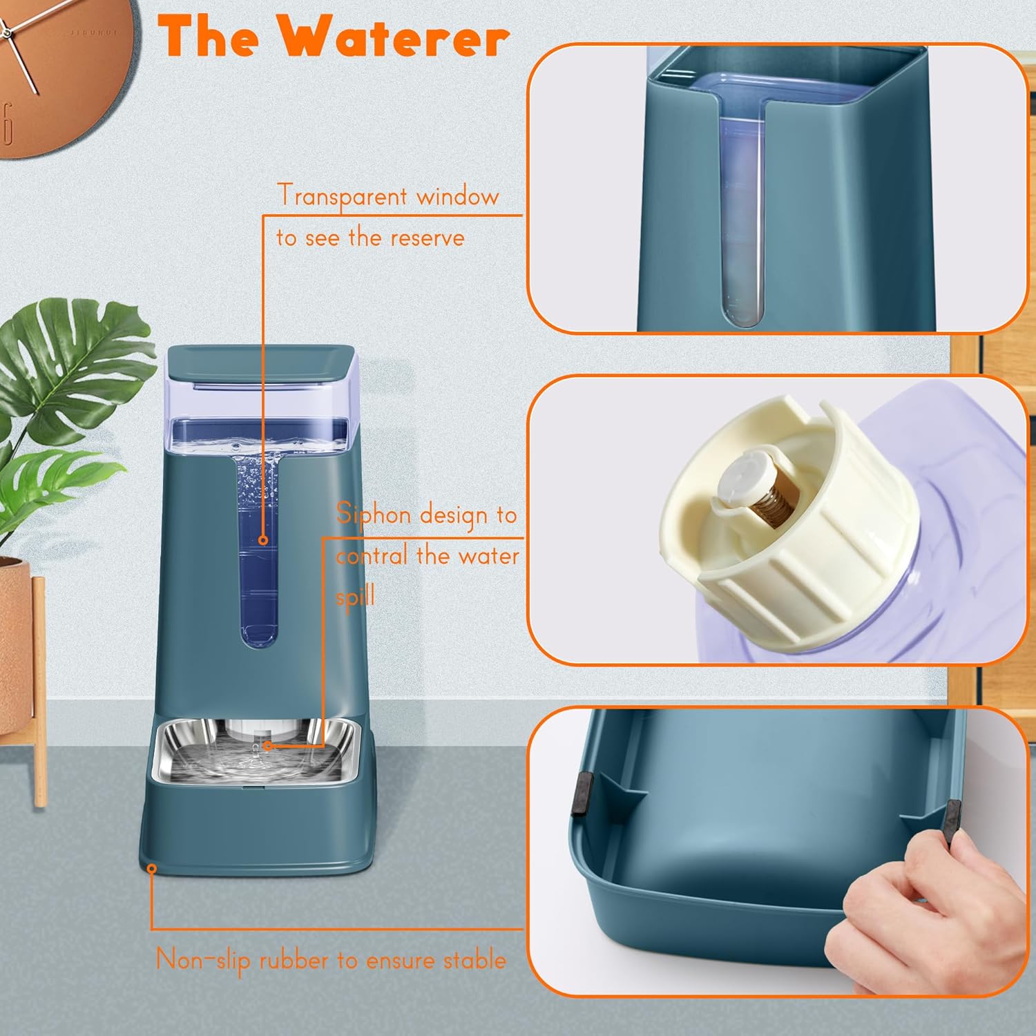 Cat Food Dispenser and Cat Water Dispenser Set with Stainless Steel Bowls Gravity Dog Feeder for Small Medium Big Cat Dog Pet Puppy Kitten, 1 Gallon x 2