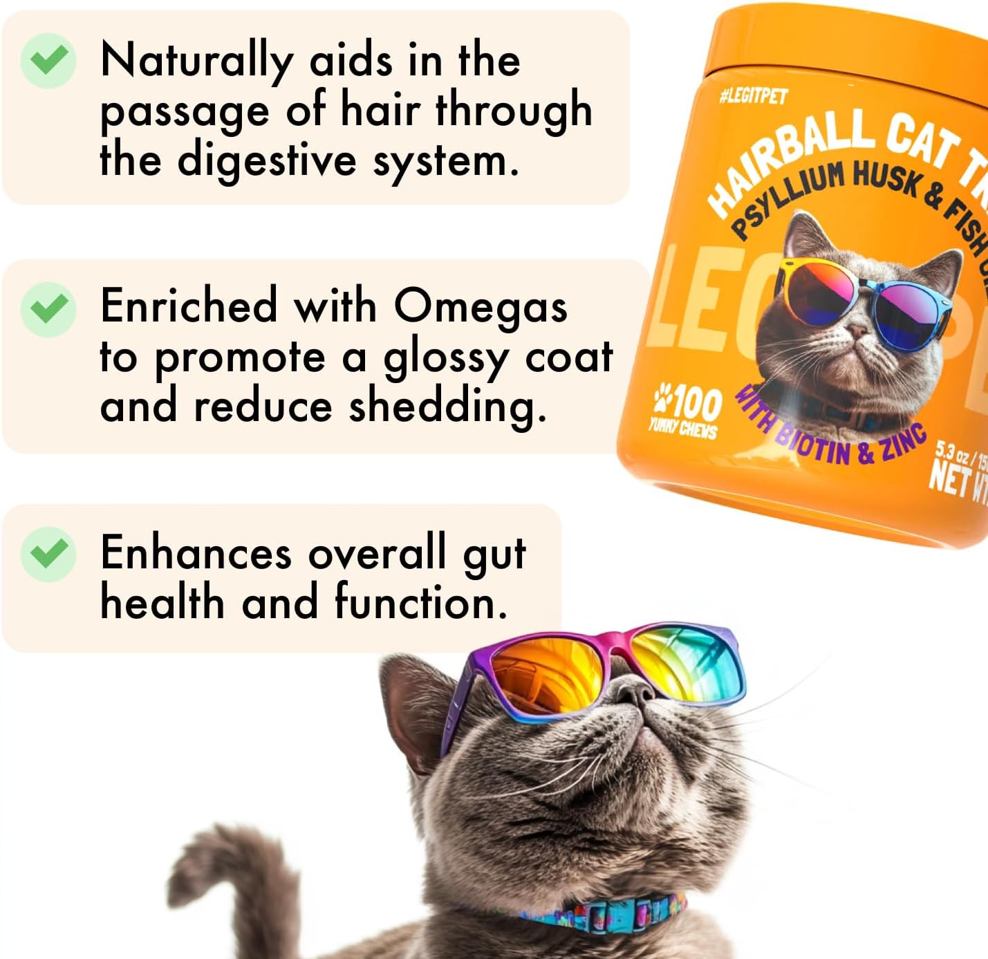 - Vet-Inspired Formula: Made with natural ingredients known for their digestive benefits, offering effective cat hairball treats for indoor cats without artificial fillers or additives.