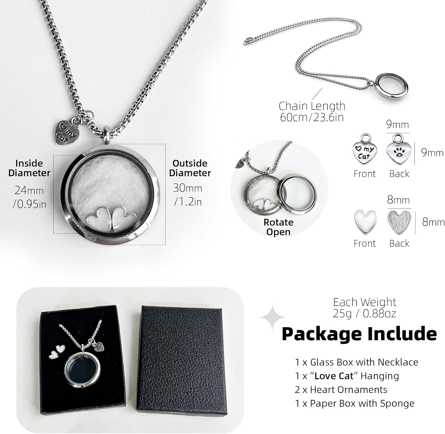 Pet Fur Memorial Necklace, Cat Hair Ashes Keepsake Necklace, Small Pet Urn Pendant Vial Necklace for Ashes, Dog Fur Memorial Necklace Jewelry, Dog Ash Small Urn Glass Necklace (Cat)