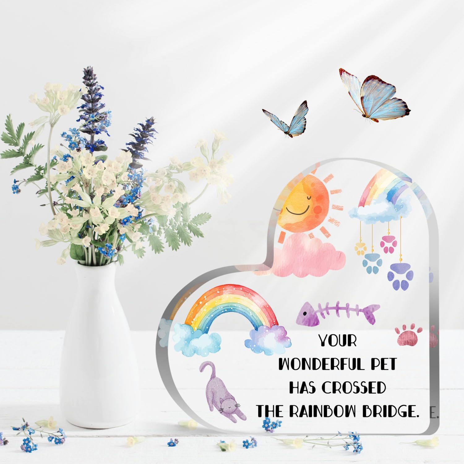 Cat Memorial Gifts for Loss of Cat, Pet Memorial Acrylic Rainbow Bridge Decorations Condolences Gifts for Pet Loss Remembrance Keepsake, Beloved Pet Cat Sympathy Gifts