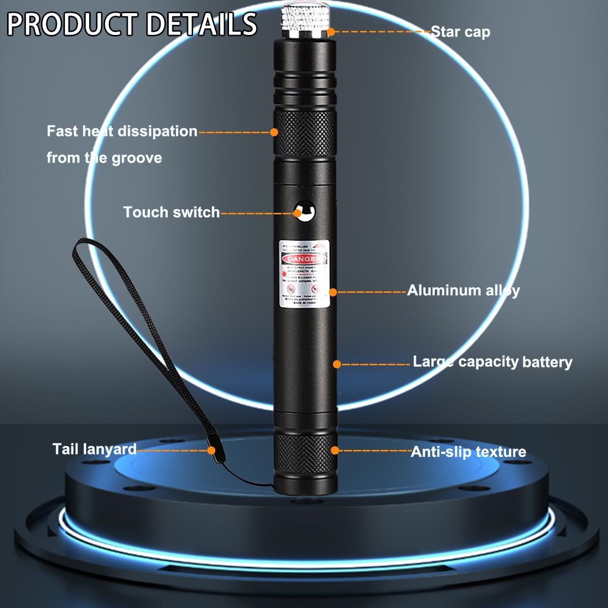 - [Long range and starlight effects] Straight Beam Mode: Remove the star cap from the high power laser pointer to project a straight, long distance red laser beam. Star Mode: Attach and rotate the star cap to create mesmerizing star patterns.