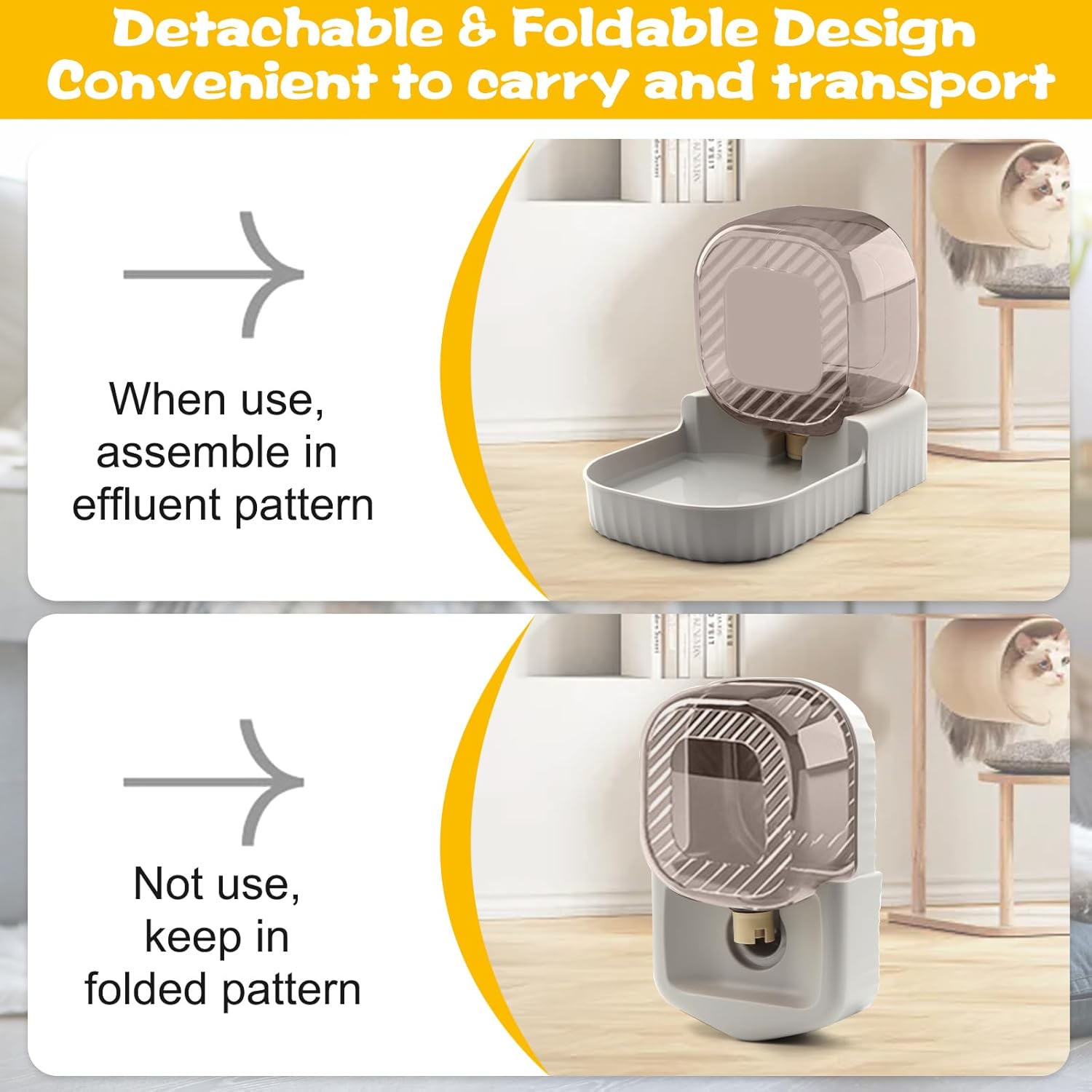 - Easy to Clean: Bucket and base of the automatic cat water bowl can be disassembled easily, you can rinse directly with water, it is recommended to wash once a week. NOTE: it comes with a sticker, if you like, you can stick it to the bucket body. If sticker pasted, need to clean it by wiping with cloth, water soaking is not allowed.