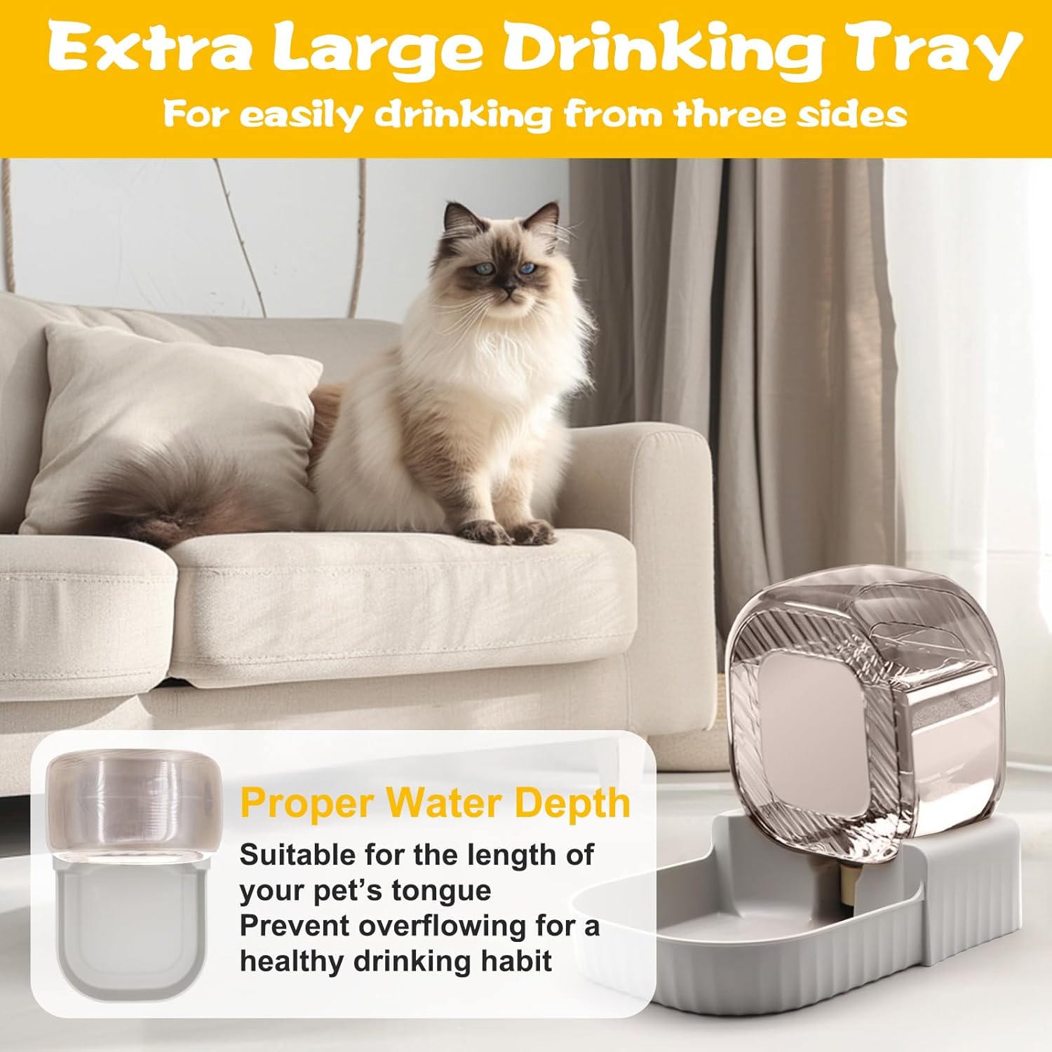 - 3L Pet Water Bowl Dispenser: 3L/0.8 Gallons large capacity dog water bowl dispenser, sufficient amount of water for small to medium sized cats or dogs when pet owners have to go out for about 4 - 8 days. Extra Large Drinking Tray allows pets to drinking easily from three sides