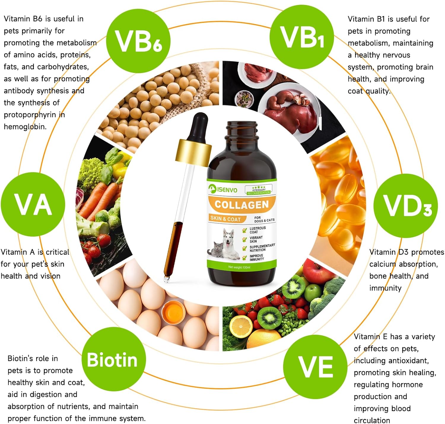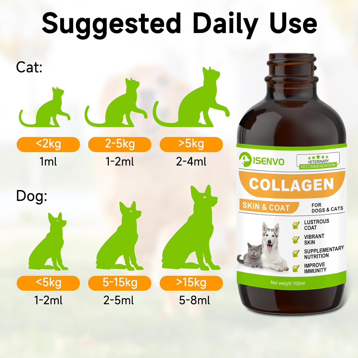 Liquid Collagen for Dogs and Cats, ISENVO Dog Collagen Drops, Skin & Coat Supplement, Itch Relief, Joint & Mobility Support, FDA Approved, Daily Dog Supplements, 3.38 oz