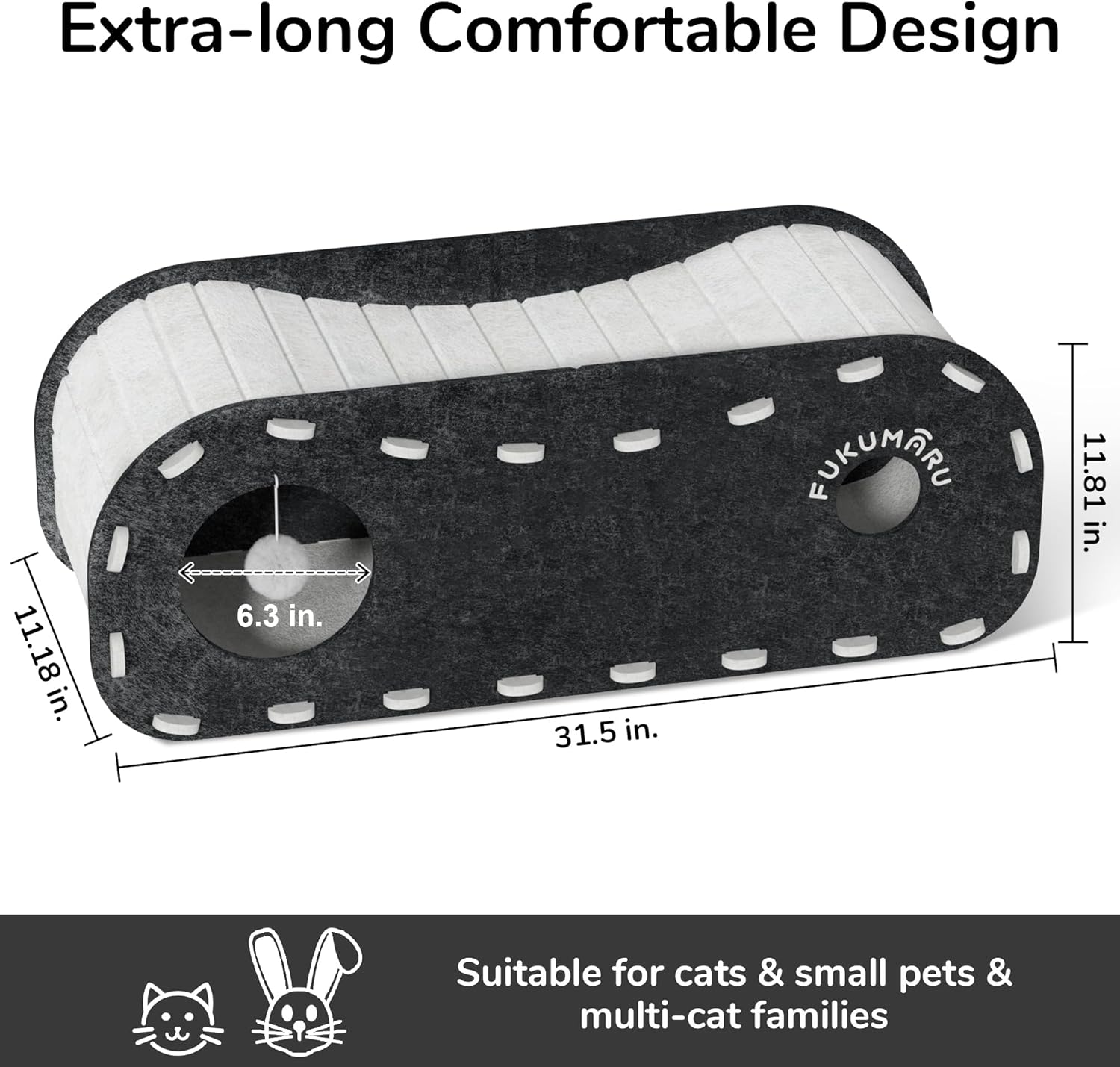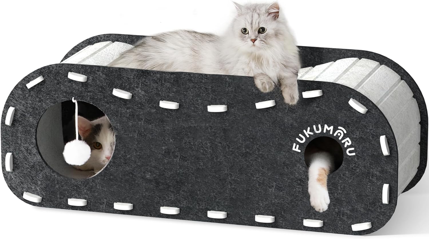 FUKUMARU Cat Beds for Indoor Pets, 31.5 Inches Extra-Large Cat Cave for Multi-Pet, Cozy House with Fluffy Ball Hanging, Scratch Resistant Felt Kitten Hideaway Bed, Feline Tunnel, Grey