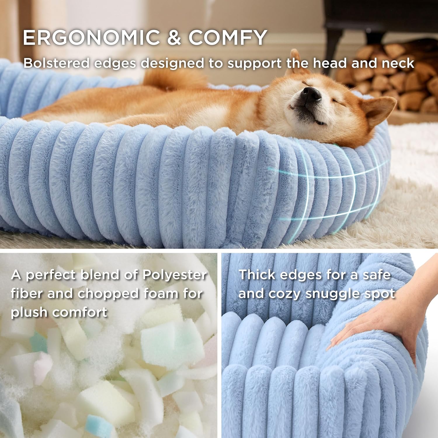 - Supportive Raised Sides: The raised sides provide a cozy nook for your pet’s head and neck, promoting peaceful sleep. The 2:1 mix of chopped foam and polyester fiber offers perfect support and comfort for pets of all sizes.